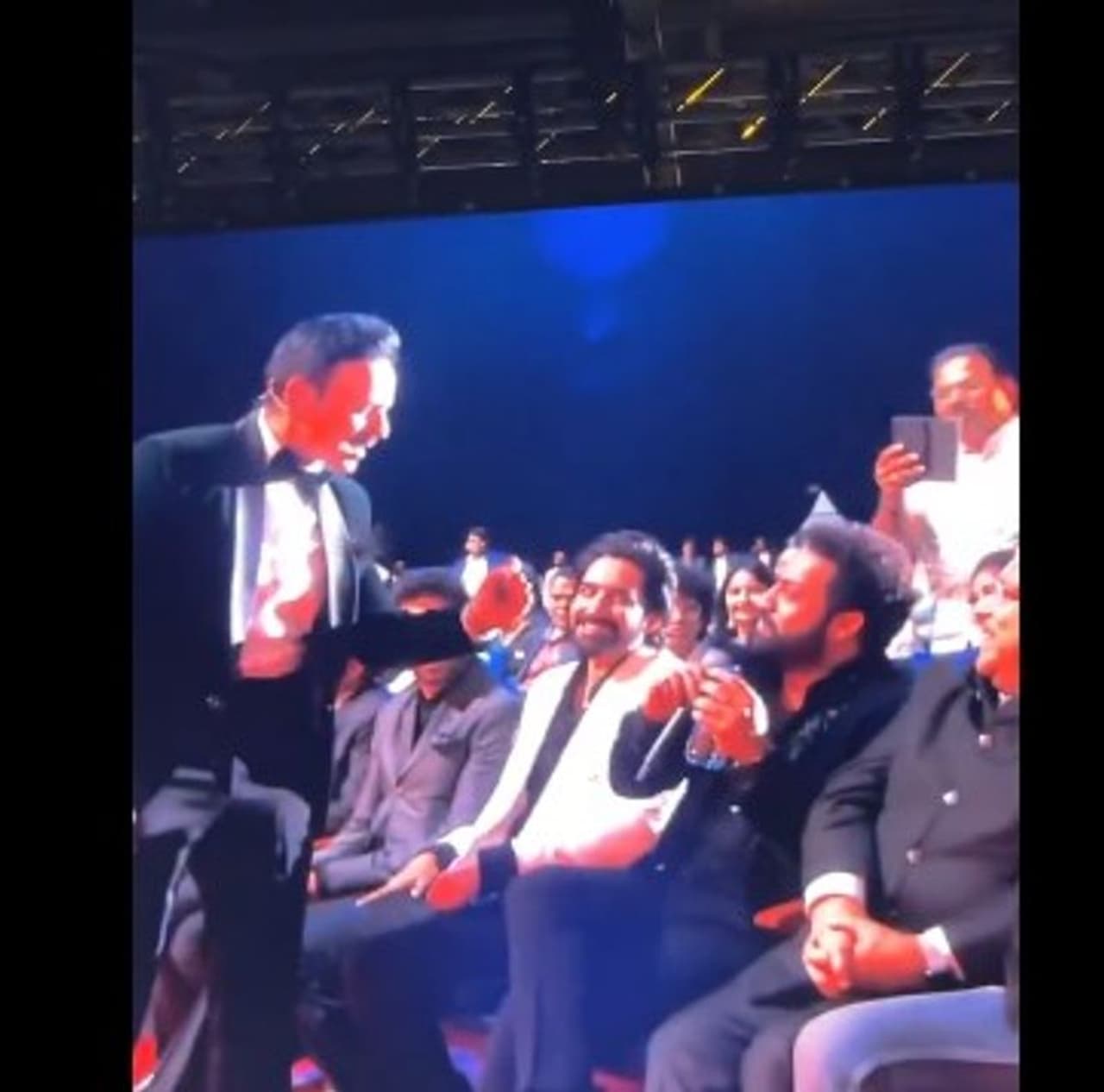 హీరో రిషబ్ శెట్టి వేదికపై అవార్డు అందుకుంటూ ఫ్రంట్ రోలో కూర్చుని ఉన్న జూ.ఎన్టీఆర్ తో ఆసక్తికర సంభాషణ సాగించారు. వీరిద్దరూ కన్నడలో మాట్లాడుకోవడంతో ఫ్యాన్స్ ఫిదా అవుతున్నారు. ఎన్టీఆర్ తల్లి మాతృభాష కన్నడ కావడంతో తారక్ కి ఆ లాంగ్వేజ్ స్పష్టంగా వచ్చు.