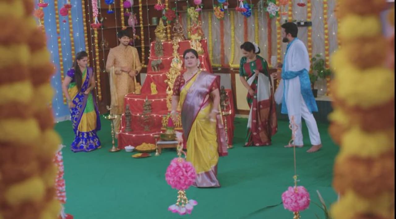 దానికి జగతి, పోనీలే మహేంద్ర అని అనగా దేవయాని, కింద కంగారు పడితే కుదరదు పైకెళ్ళి పిలిస్తే కుదురుతుంది అని అనగా అదే సమయంలో రిషి, వసుదారలు కిందకి వస్తారు.చేతులో బొమ్మ ఏంటి అని దేవయాని అడగగా, నేనే చేశాను మేడం అని వసుధార అంటుంది.అప్పుడు గౌతమ్,ఈ బొమ్మలు చాలా బాగున్నాయి మీకు ఫోటో తీస్తాను అని అంటాడు. దానికి వసుధార, మేము ముందే తీసుకుందాము అని మాట పూర్తిగా కాకముందే రిషి వసుని ఆపుతాడు. ఏదో అంటున్నావు అని గౌతమ్ అనగా, ఏమీ లేదు అని వసు చెప్పగా గౌతం వాళ్లకి ఫోటో తీస్తాడు.తర్వాత ఆ బొమ్మ ను బొమ్మల కొలువు దగ్గర పెట్టి అందరూ బొమ్మలు కొలువు చేస్తారు. అప్పుడు అందరూ మనసులో కోరికలు కోరుకుంటూ, రిషి,వసుదారలు ఎప్పుడూ కలిసే ఉండాలి అని జగతి మహీంద్రాలు కోరుకుంటారు. దేవయాని, నా పెద్దరికం ఎప్పటికీ పోకూడదు రిషికి నామీద ఎప్పుడు ప్రేమ గౌరవం ఉండాలి అని కోరుకుంటుంది.