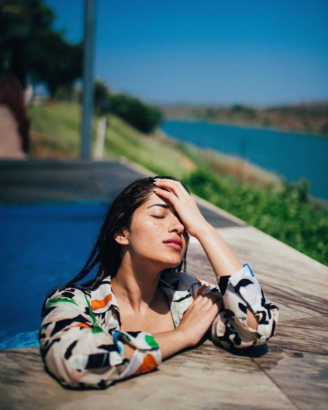 ప్రస్తుతం ఈ అమ్మడు పంచుకున్న స్విమ్మింగ్ పూల్ బ్రా పిక్స్ కట్టిపడేస్తున్నాయి. చూపుతిప్పుకోనివ్వడం లేదు సరికదా, ఇంటర్నెట్ని షేక్ చేస్తున్నారు. నిన్నటి నుంచి రుహానీ శర్మ వరుసగా కొన్ని గంటల గ్యాప్తో ఈ ఫోటోలను పంచుకుంటుంది. కొద్ది కొద్దిగా మంచి ఫుల్ మిల్స్ ని వడ్డించింది. సామాజిక మాధ్యమాల్లో దుమారం రేపుతుంది. ఈ అమ్మడి పిక్స్ తెగ వైరల్ అవుతున్నాయి.