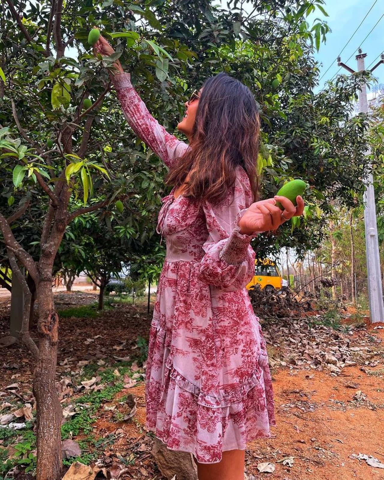 ఉగాది పండుగ పోయి వారం రోజులవుతుంది. కానీ పాయల్ రాజ్పుత్ మాత్రం పుల్లని మామిడి కాయాలపై మోజు పడింది. పొట్టి గౌనులో హోయలు పోతూ మామిడి తోటలో విహరించింది. ఇంకా పండీ పండని పుల్లని మామిడి కాయాలు కోస్తూ మెరిసింది. తాజాగా ఆయా ఫోటోలను పంచుకుంటూ నెటిజన్లకి, ఆమె అభిమానులకు ఖుషీ చేస్తుంది.