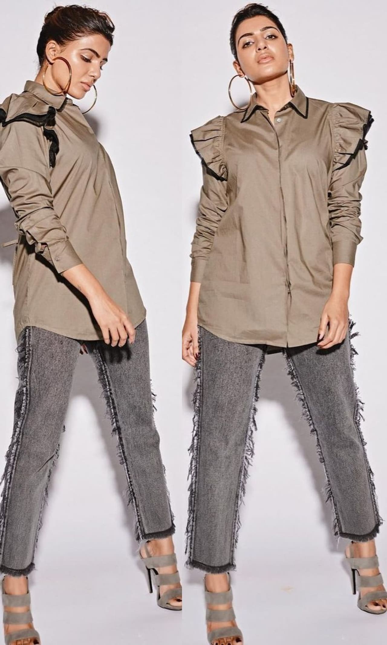 బ్రౌన్ కలర్ టాప్, జీన్స్ ధరించిన సమంత అల్ట్రా స్టైలిష్ లుక్ లో దర్శనం ఇచ్చారు.