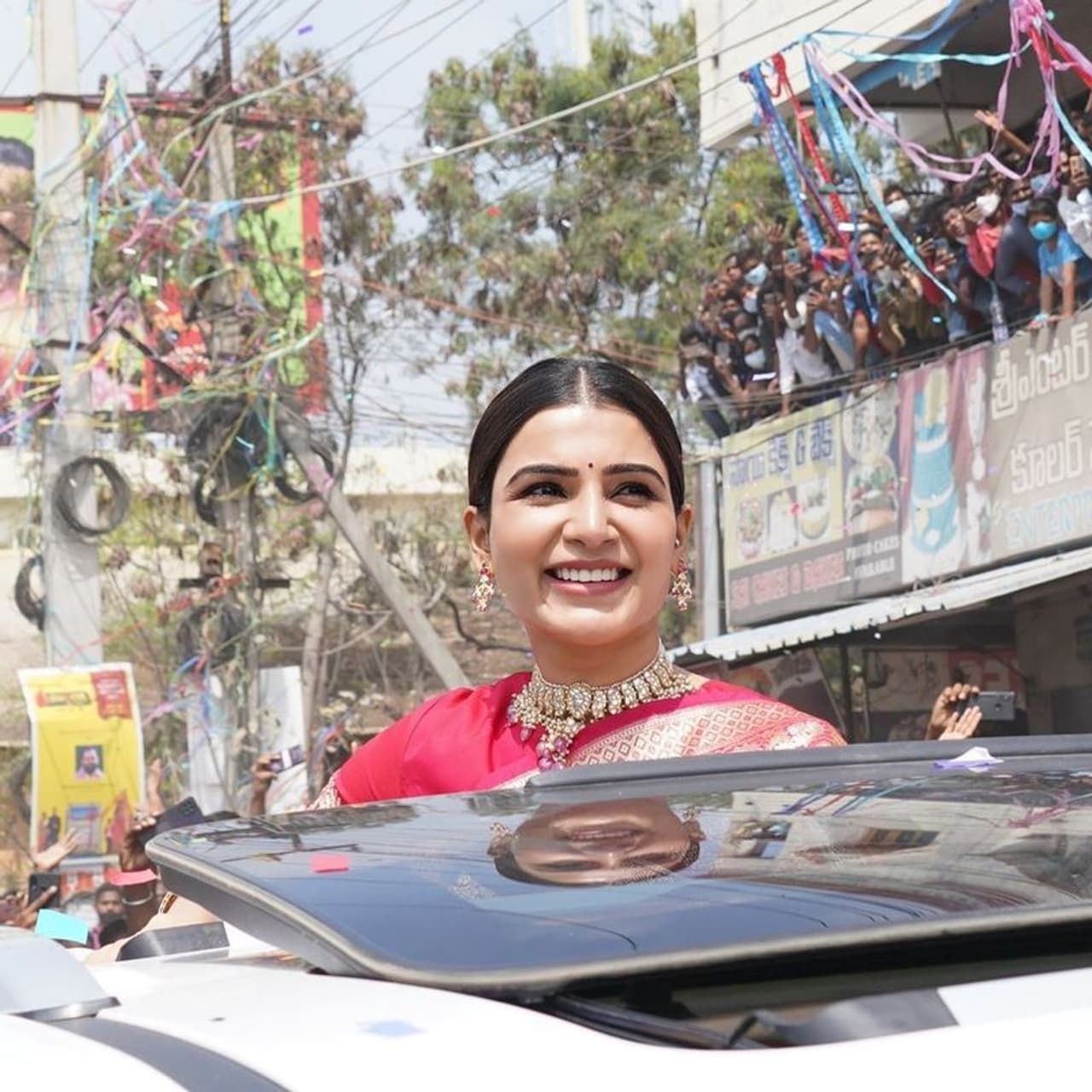 సమంత కారులో నుండి దిగి అభిమానులకు అభివందనం చేశారు. చిరునవ్వుతో వాళ్ళను పలకరించారు. గంటల తరబడి సమంత రాక కోసం నిరీక్షించిన అభిమానులు సమంతను చూశాక తమ కష్టమంతా మర్చిపోయారు. సమంత తన నల్గొండ ఈవెంట్ కి సంబంధించిన ఫోటోలు ఇంస్టాగ్రామ్ లో షేర్ చేశారు. పట్టుచీరలో పదహారణాల తెలుగు పడుచులా సమంత కనిపించారు.