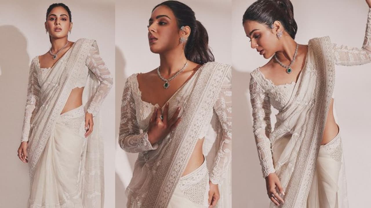 సంయుక్త మీనన్ ట్రెడిషనల్ లుక్ లో మెరుపులు మెరిపిస్తోంది. లేటెస్ట్ గా ఆమె షేర్ చేసిన ఫొటోస్ యువతని మైండ్ బ్లాక్ చేస్తున్నాయి. వైట్ డిజైనర్ శారీలో మెరుపులు మెరిపిస్తూ ఇచ్చిన ఫోజులు క్రేజీగా ఉన్నాయి.