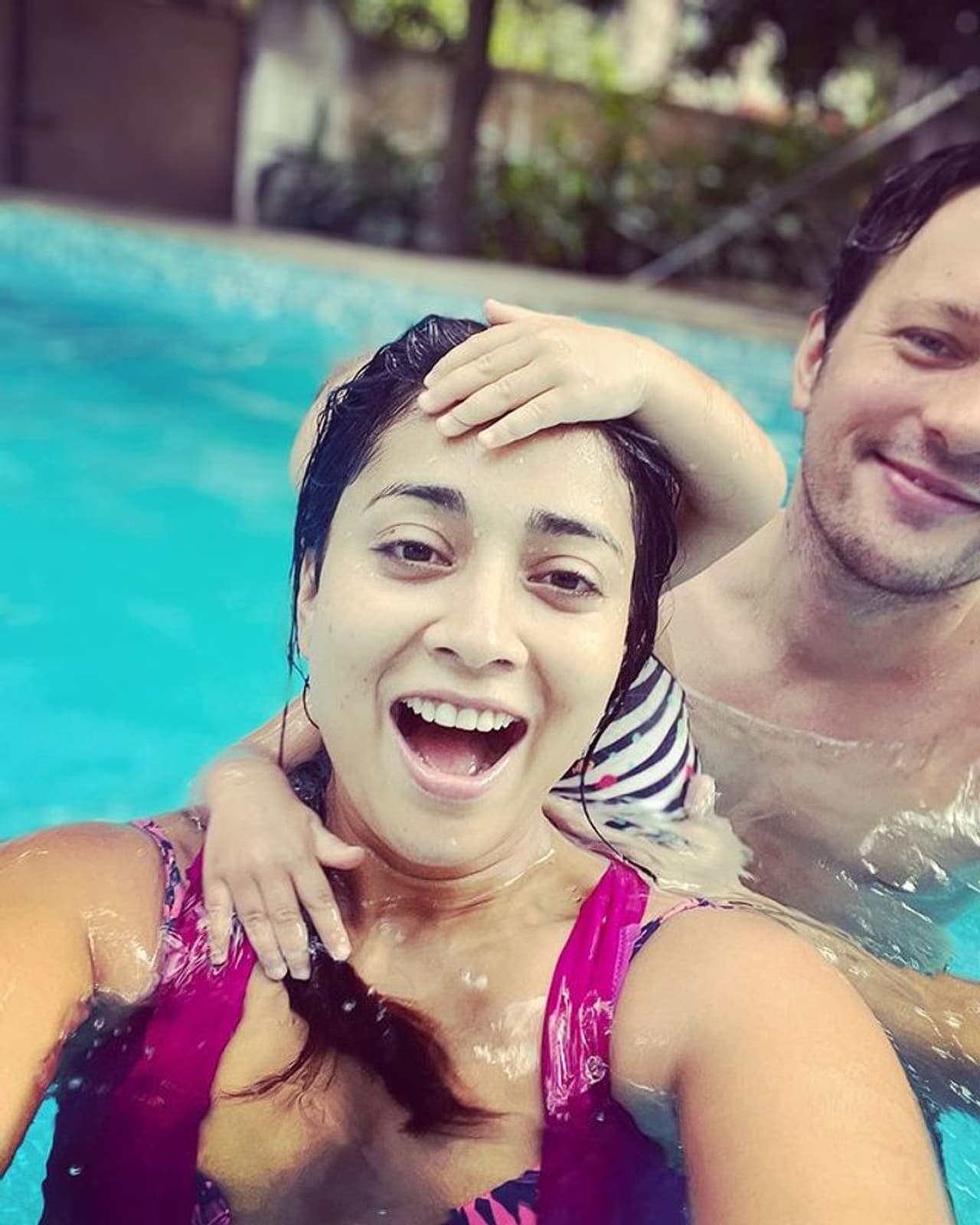 బికినిలో జలకాలు ఆడుతున్న ఫొటోస్ ని అభిమానులతో పంచుకుంటోంది. బికినీలో అందాలు ఆరబోస్తూనే తన కుమార్తె తో శ్రీయ స్విమ్మింగ్ పూల్ లో ఆడుకుంటోంది. వీరిద్దరితో కలసి కొశ్చివ్ కూడా ఉన్నాడు. ఫ్యామిలీ మొత్తం స్విమ్మింగ్ పూల్ లో ఎంజాయ్ చేస్తున్నారు.