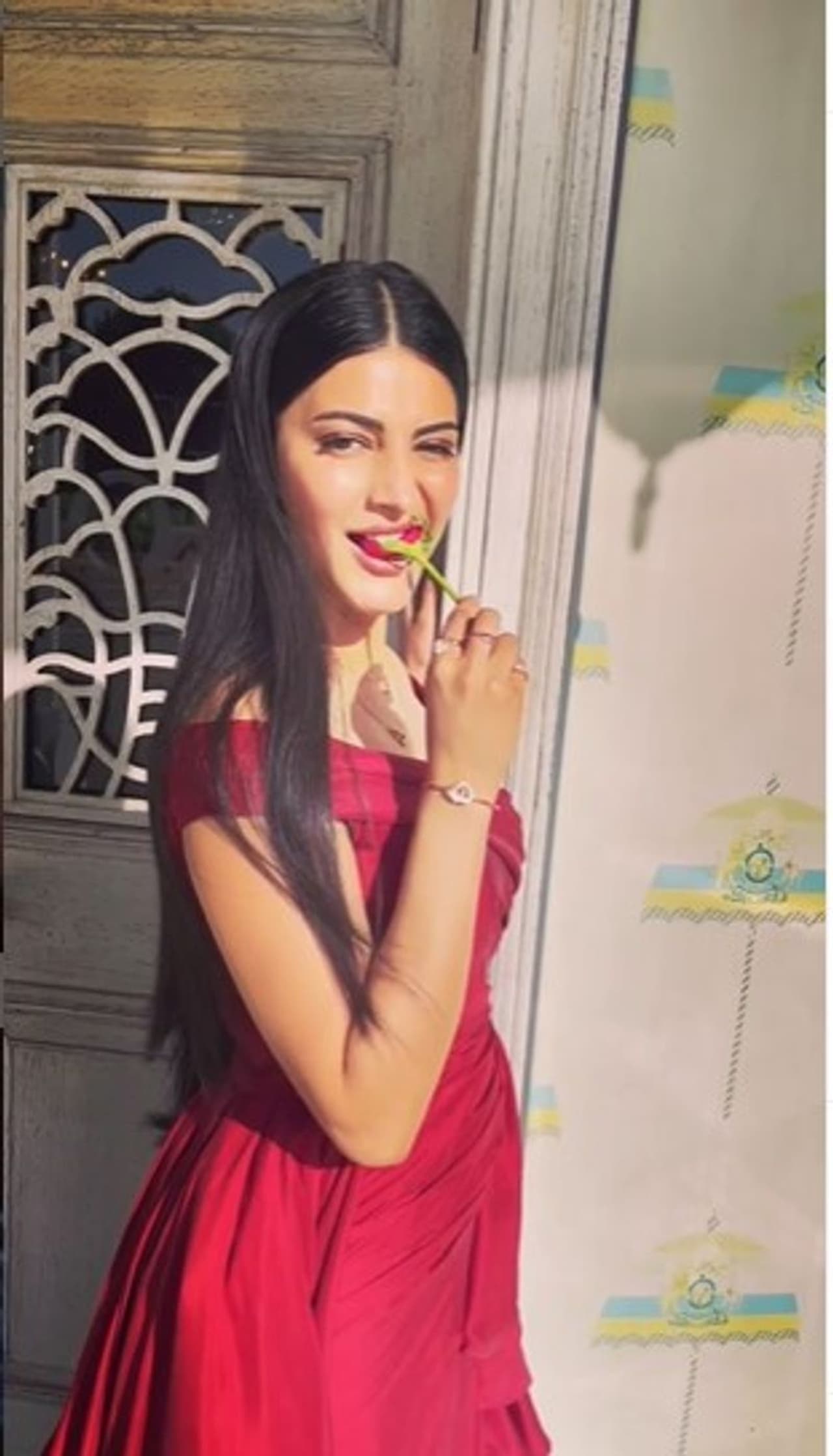 తాజాగా శృతి హాసన్ సోషల్ మీడియాలో మేకప్ లేకుండా ఉన్న తన బ్యూటిఫుల్ ఫొటోస్ ని షేర్ చేసింది. తనకి వైట్ డ్రెస్ అంటే నచ్చదని.. కనై ఒకసారి ట్రై చేసినట్లు శృతి హాసన్ పేర్కొంది. మేకప్ లేకపోయినప్పటికీ శృతి హాసన్ బ్యూటిఫుల్ గా ఉంది. అలాగే శృతి హాసన్ రెడ్ డ్రెస్ గులాబీ పువ్వుని నమిలేస్తూ ఉన్న వీడియో కూడా షేర్ చేసింది.