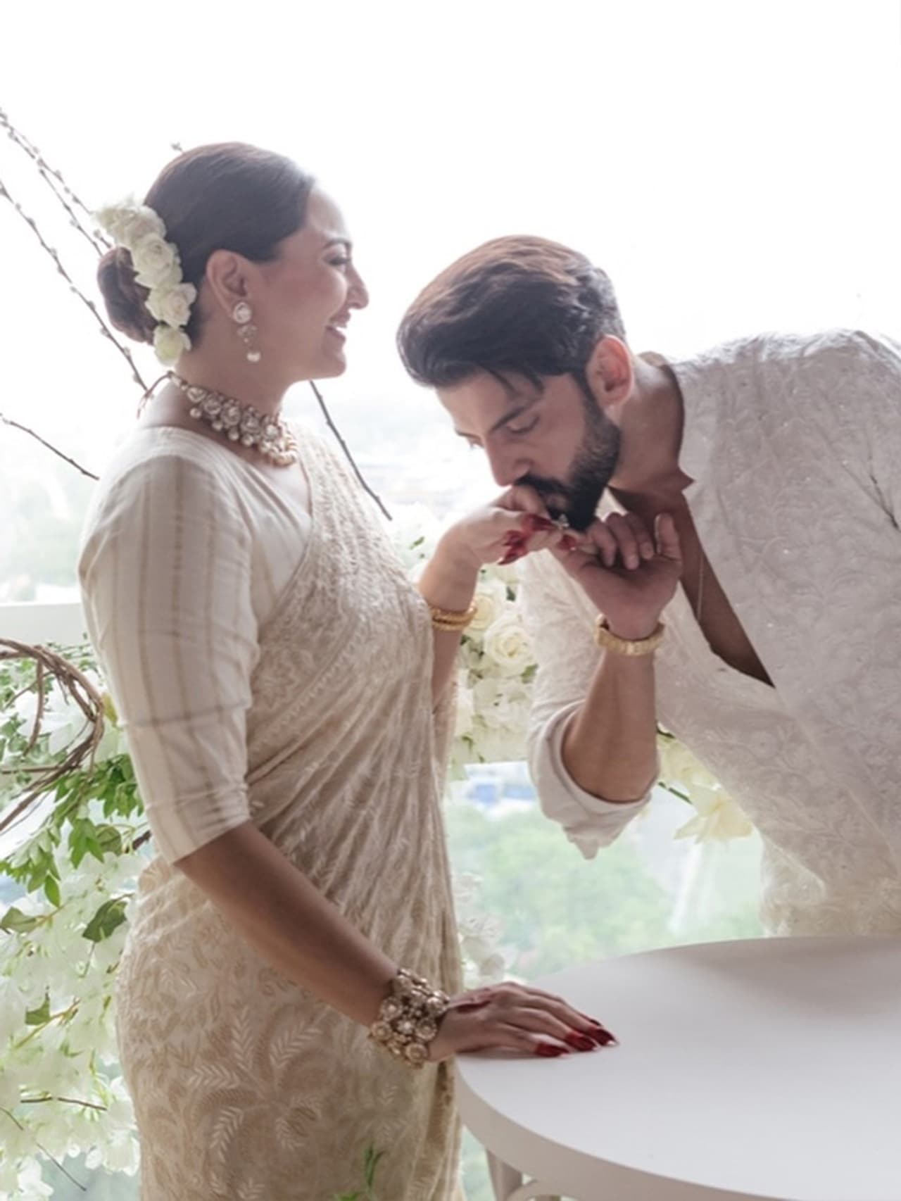 సోనాక్షి సిన్హా మరియు జహీర్ ఇక్బాల్ బాంద్రాలో చాలాదగ్గరి బంధువులు, స్నేహితుల మధ్య పెళ్లి చేసుకున్నారు. దాదాపు ఏడేళ్లు డేటింగ్ తరువాత వీరు వివాహ బంధంతో ఒక్కటయ్యారు. అయితే గతంలో సోనాక్షి ఏంగేజ్మెంట్ చేసుకుందంటూ కూడా పుకార్లు వచ్చాయి. వేలికి పెద్ద డైమండ్ రింగ్ వేసుకుని.. అలంకరించుకున్న ఫోటోలు వైరల్ అయ్యాయి.