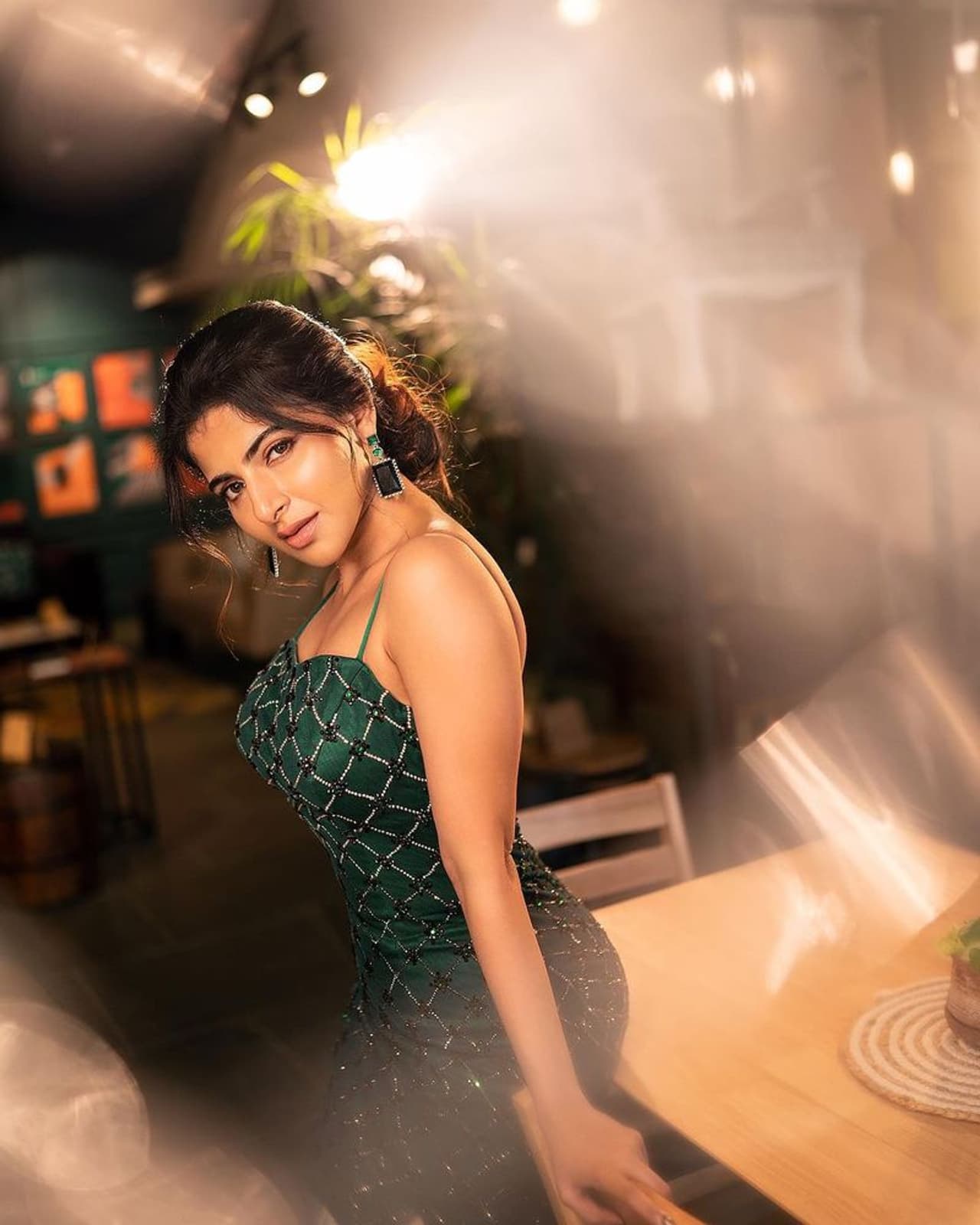 అయితే అంతకు మించిన ఘాటు సోషల్ మీడియాలో ఆవిష్కరిస్తుంది. కెమెరా ముందు అందాల విందు చేస్తూ పోజులిస్తుంది. తన అందాలను సరికొత్తగా ఆవిష్కరిస్తూ టెంప్ట్ చేస్తుంది. కుర్రాళ్లని రెచ్చగొడుతుంది. నెట్టింట రచ్చ రచ్చ చేస్తుంది.