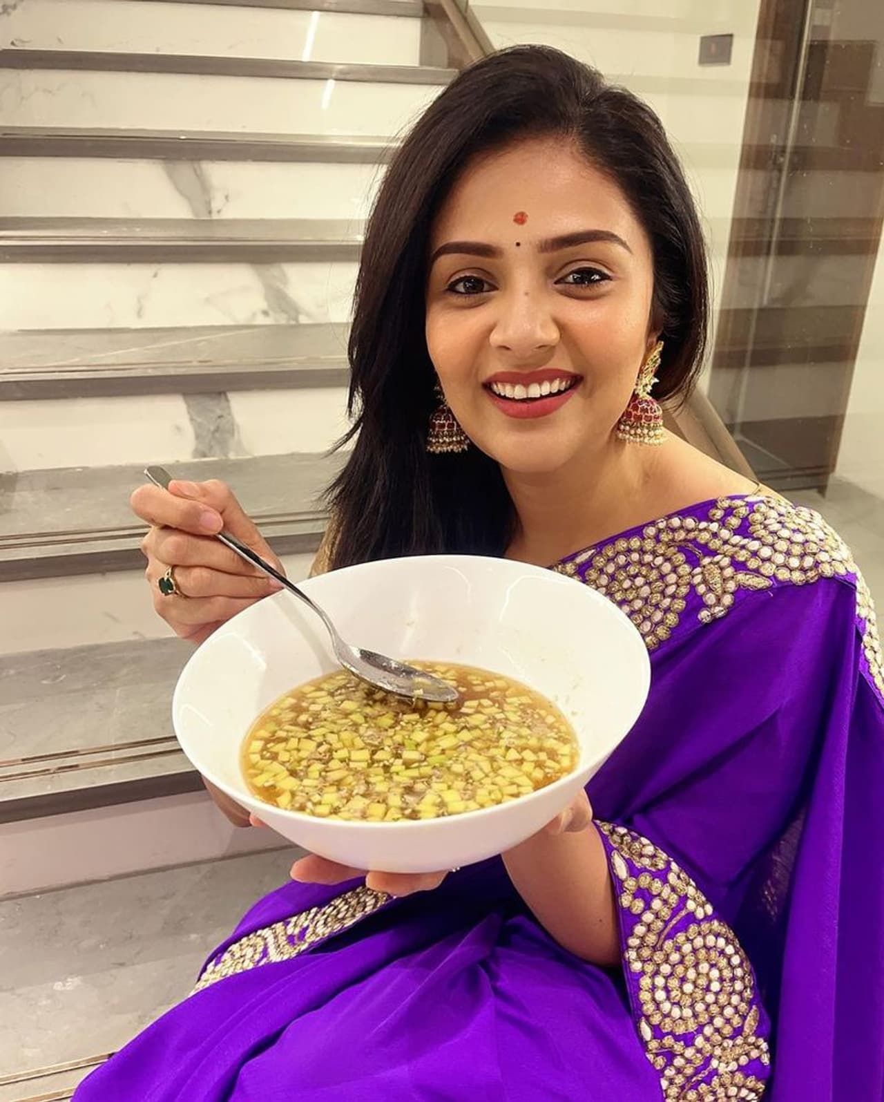 శ్రీముఖి పంచుకున్న ఈ నయా ఫోటోల్లో ఆమె ఉగాది పచ్చడితో కనిపించింది. బౌల్లో షడ్రుచుల సమ్మేళనంతో తయారు చేసిన పంచడి ఆరగిస్తూ చిలిపి పోజులిచ్చింది. కొంటె లుక్లో క్యూట్ అందాలతో మరింత మంత్రముగ్దుల్ని చేస్తుంది. దీంతో ఇప్పుడీ ఫోటోలు సోషల్ మీడియాలో వైరల్ అవుతున్నాయి. వీటికి అభిమానులు స్పందిస్తూ విషెస్ తెలియజేస్తున్నారు.