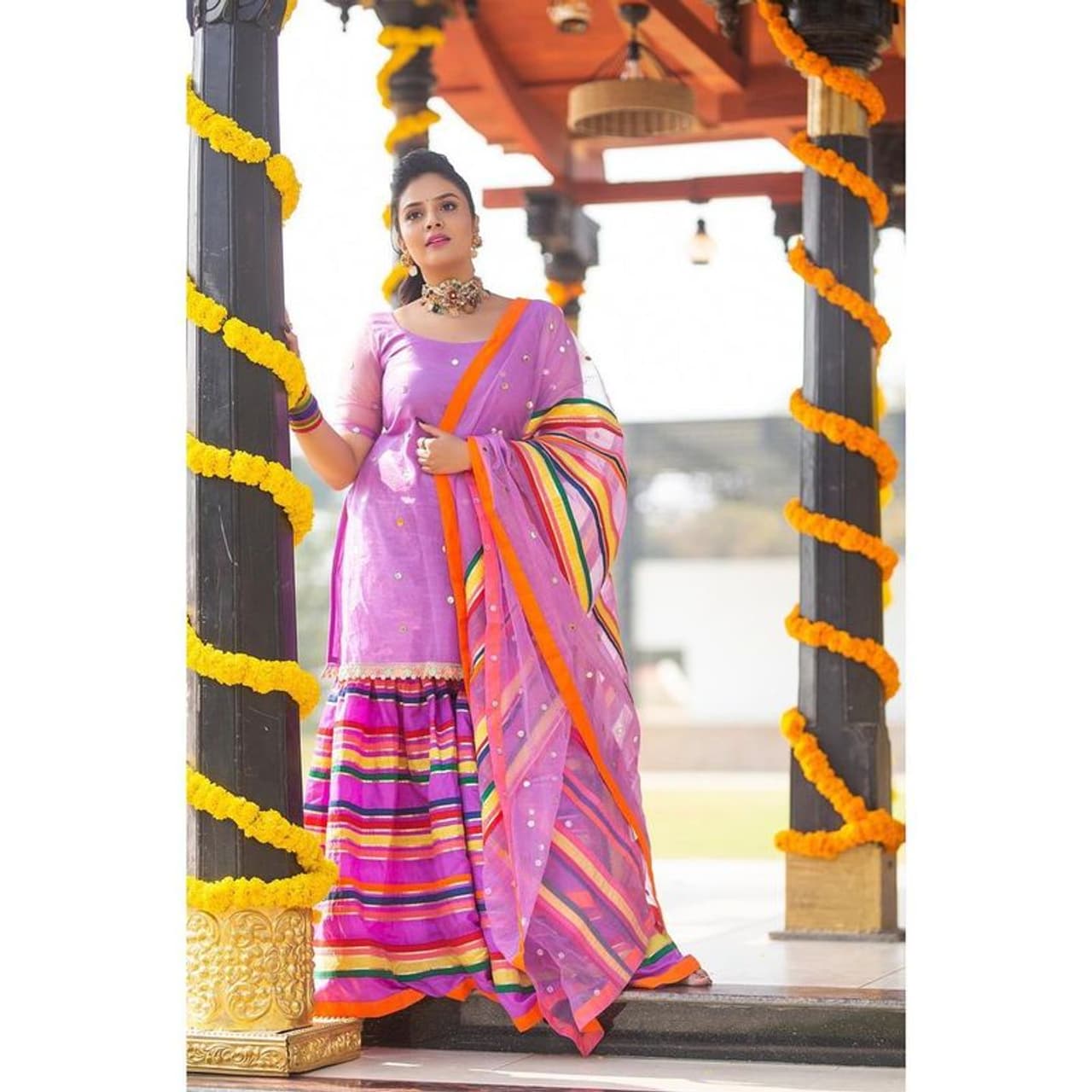 పింక్ కలర్ టైట్ ఫిట్ గౌన్, చున్నీ వేసుకుని ఫోటోలకు పోజులిచ్చింది. అందాల రామచిలుకలా ఉంది శ్రీముఖి. ఆమె చూపులు చురకత్తుల్లా ఉన్నాయి.