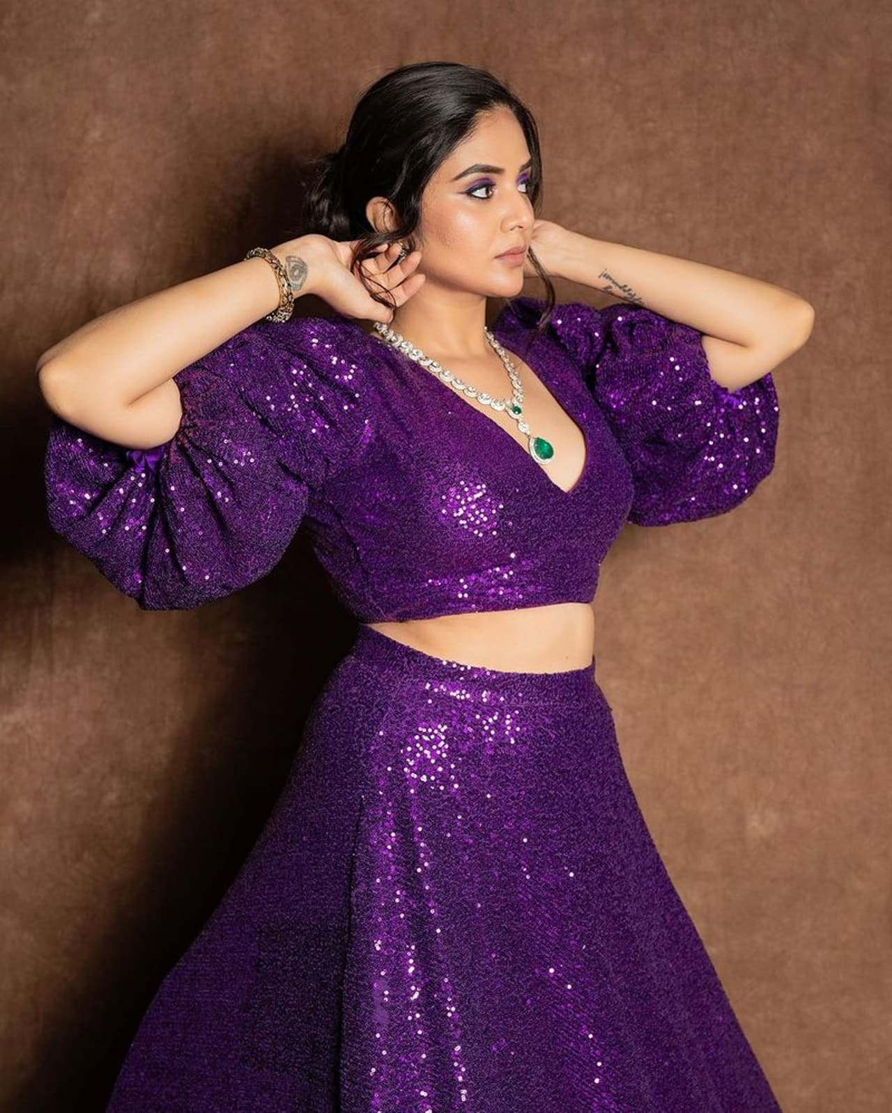 చిట్టి పొట్టి డ్రెస్సుల్లో మాత్రమే కాదు.. ఇలా నిండైన వస్త్రధారణలో కూడా తాను అందంగా ఉంటానని శ్రీముఖి చెప్పకనే చెబుతోంది. పర్పుల్ కలర్ డ్రెస్ లో శ్రీముఖి మామూలు అరాచకం సృష్టించడలేదు.