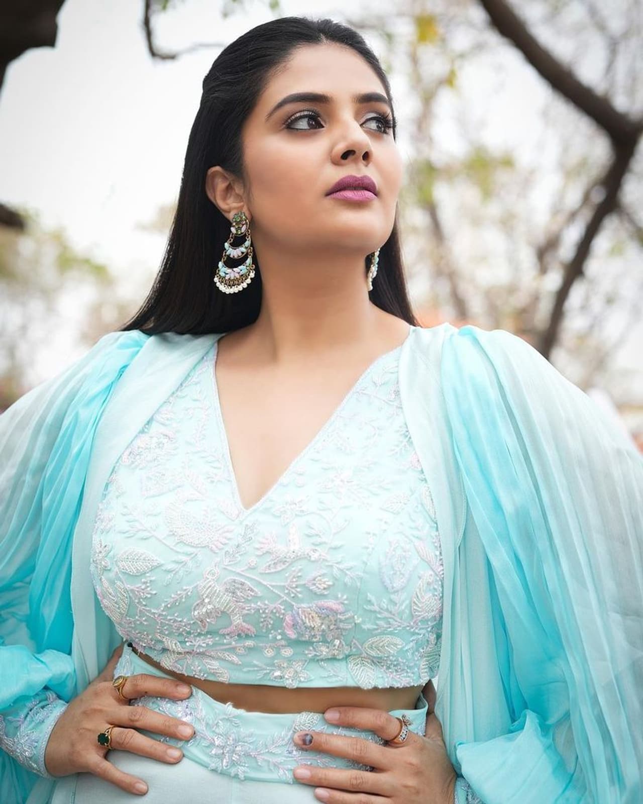 నీలి రంగు డ్రెస్ లో శ్రీముఖి ఘాటైన పెదవులతో, బరువెక్కిన అందాలతో అలా నిలబడితే ఆమె సోయగాన్ని చూస్తూ యువత మైమరచిపోతున్నారు. శ్రీముఖి బ్యూటీ క్వీన్ అంటూ కీర్తిస్తున్నారు.