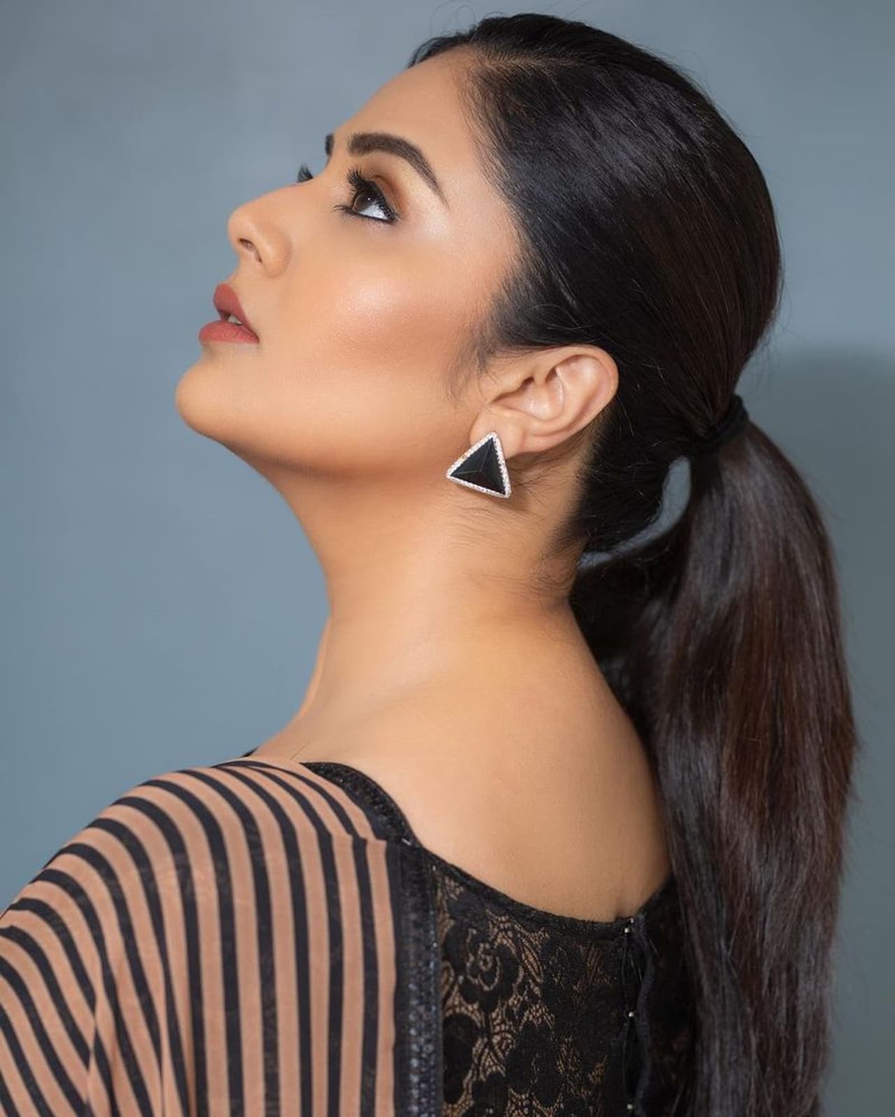 నడుముకి వయ్యారంగా బెల్టు బిగించి కట్టు శ్రీముఖి ఇస్తున్న ఫోజులు మైండ్ బ్లోయింగ్ అనే చెప్పాలి. బ్లాక్ బ్లౌజ్ లో పరువాలతో కవ్వించే విధంగా శ్రీముఖి కొంగు కాస్త పక్కకి జరిపింది.