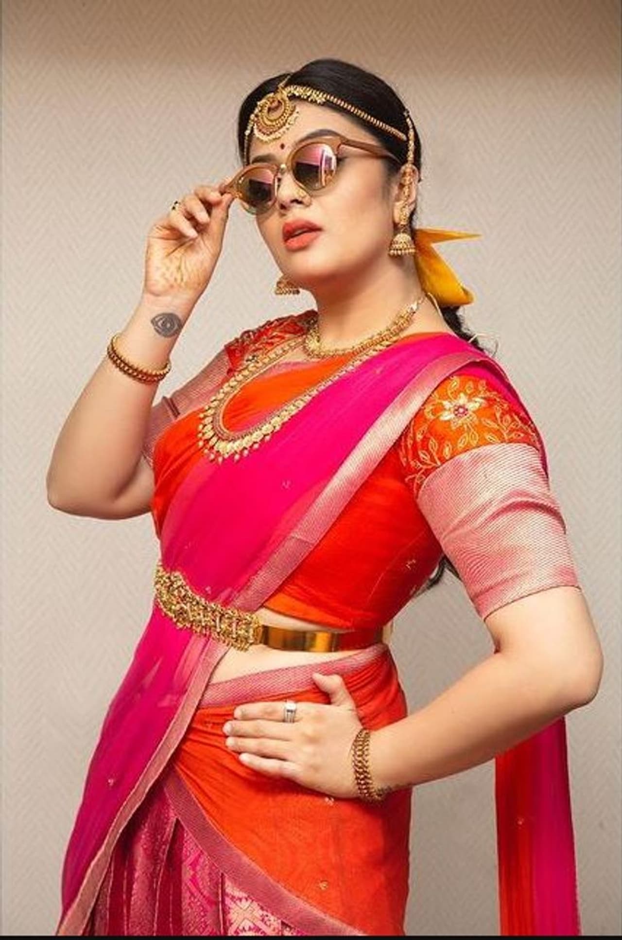 శ్రీముఖి వయ్యారంగా ఇచ్చిన ఫోజులు వైరల్ అవుతున్నాయి. ట్రెడిషనల్ లుక్ కి శ్రీముఖి కాస్త మాస్ టచ్ ఇచ్చింది. లంగాఓణి ధరించిన శ్రీముఖి స్టైల్ గా కళ్ళకు గాగుల్స్ కూడా పెట్టుకుంది. గాగుల్స్ తో ఇచ్చిన ఫోజులు క్రేజీగా ఉన్నాయి. బుల్లితెరపై శ్రీముఖికి ఇంత క్రేజ్ రావడానికి కారణం ఆమె అందం మాత్రమే కాదు చలాకీతనం కూడా.