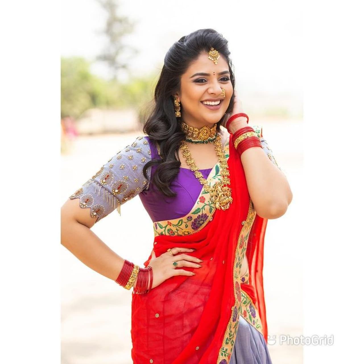 ఉగాది వేళ పండగలా దిగివచ్చిన శ్రీముఖి... ఎర్ర ఓణీలో ఏమి హొయలు పోయిందో!