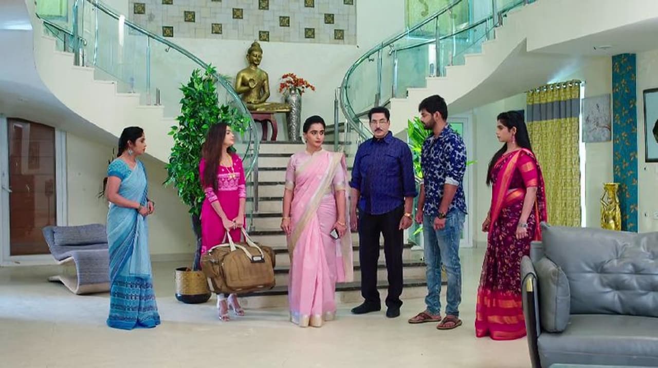 మరోవైపు శ్రీవల్లి కొడుకు నామకరణం వేడుకల్లో పంతులు కొడుకు పేరు ఏమని పెట్టాలమ్మ అని అడగగా ఈలోపు రుద్రాణి రంగరాజు... అంటూ వస్తుంది. అందరరు షాక్ అవుతారు. అలా చెప్పి రుద్రాణి బాబుని బలవంతంగా లాక్కుంటుంది.