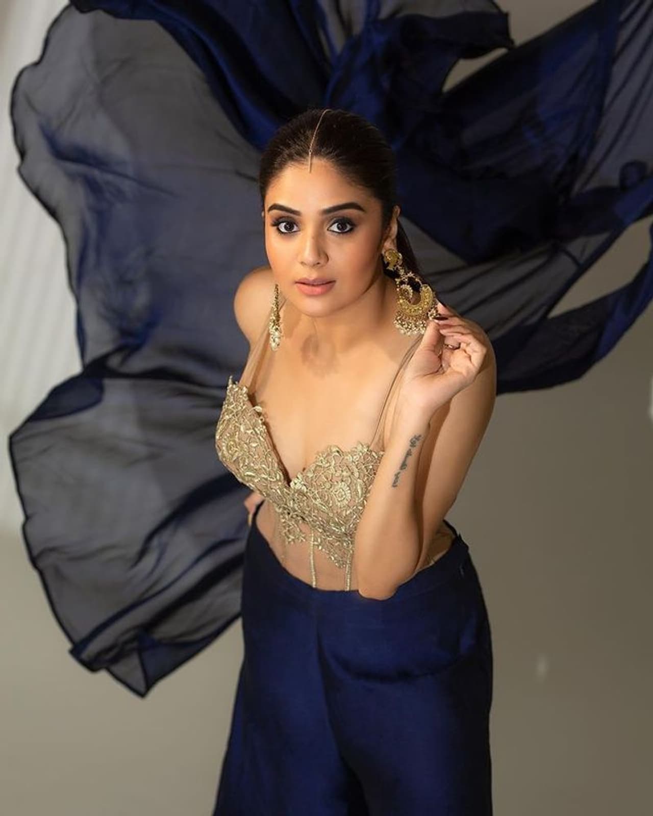 తాజాగా ఈ బ్యూటీ బ్లూ లెహెంగా, బ్లౌజ్ ధరించి హాట్ గా దర్శనమిచ్చింది. వోణీ వద్దంటూ ఎద అందాలను చూపిస్తూ నెటిజన్ల మతిపోగొడుతోంది. టాప్ గ్లామర్ తో కుర్రకారు వెర్రెక్కిపోయేలా చేస్తోంది. అలాగే అన్ని యాంగిల్లో పరువాలను ప్రదర్శిస్తూ గ్లామర్ మాయలో ముంచుతోంది.