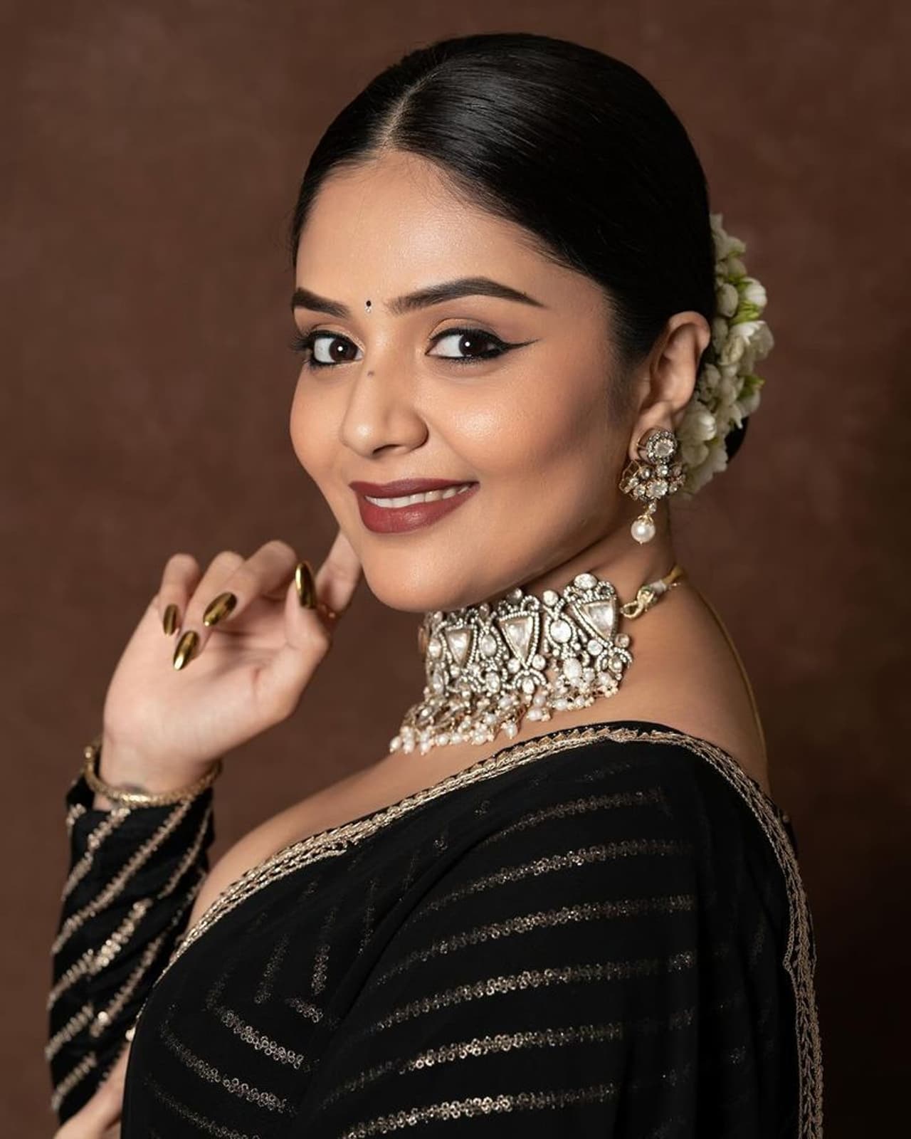 నిండైన అందాలతో మనసులు దోచేస్తున్న శ్రీముఖి... చోళీ లెహంగాలో మైమరిపించే పోజులు!
