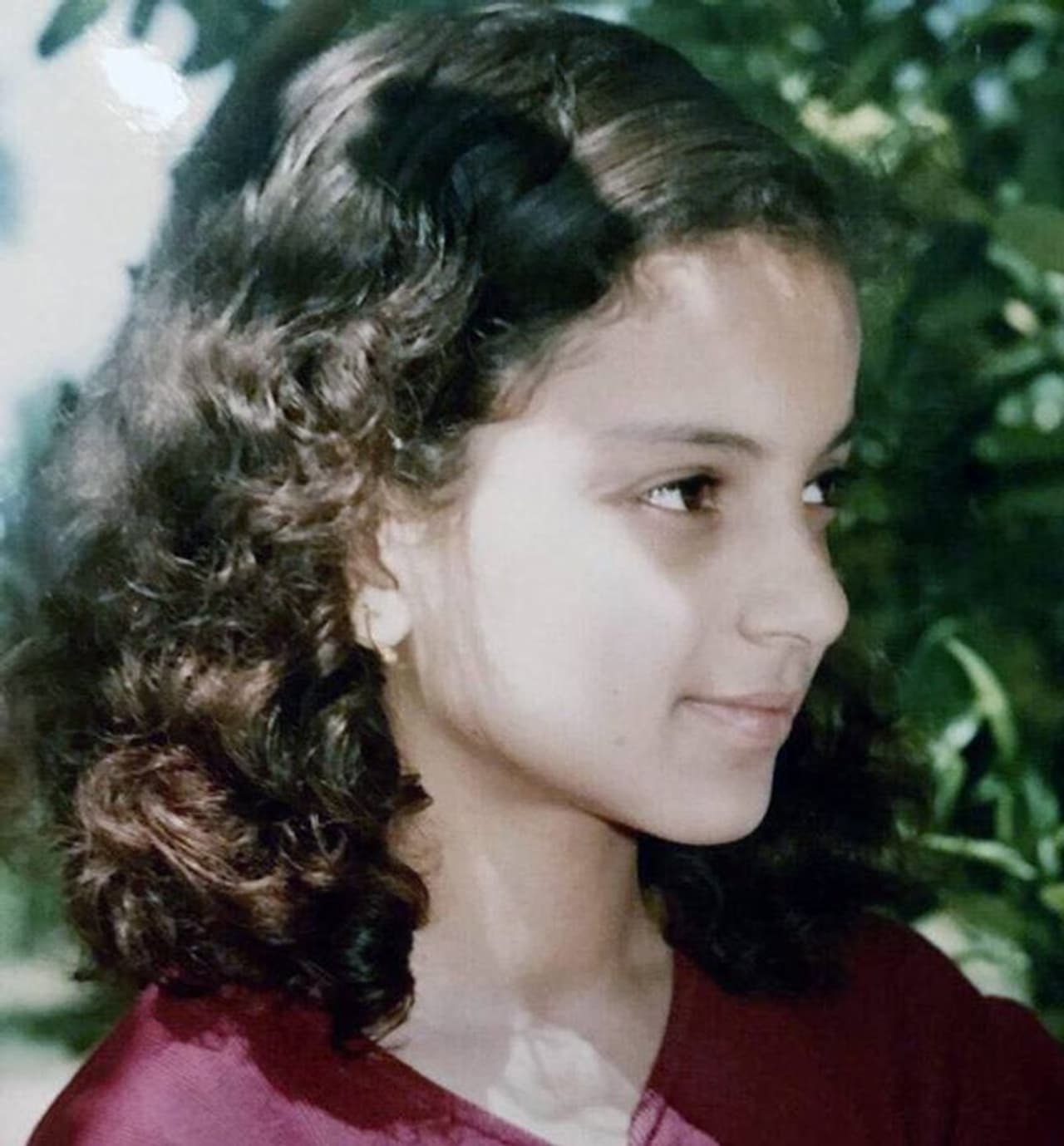 ఆమె మరెవరో కాదు నటి కంగనా రనౌత్. హిమాచల్ ప్రదేశ్లోని మండి జిల్లాలోని బాంబియా పట్టణంలో కంగనా రాజ్ పుత్ ల ప్యామిలీలో జన్మించింది. ఆమె తల్లి ఆశా పాఠశాల ఉపాధ్యాయురాలు మరియు అతని తండ్రి అమర్దీప్ వ్యాపారవేత్త. కంగనాకు ఒక అక్క, ఒక తమ్ముడు కూడా ఉన్నారు. కంగనాకు చిన్నప్పటి నుంచి సినిమాల్లో నటించాలని కోరిక. అయితే దానికి తల్లిదండ్రులు ఒప్పుకోలేదు.