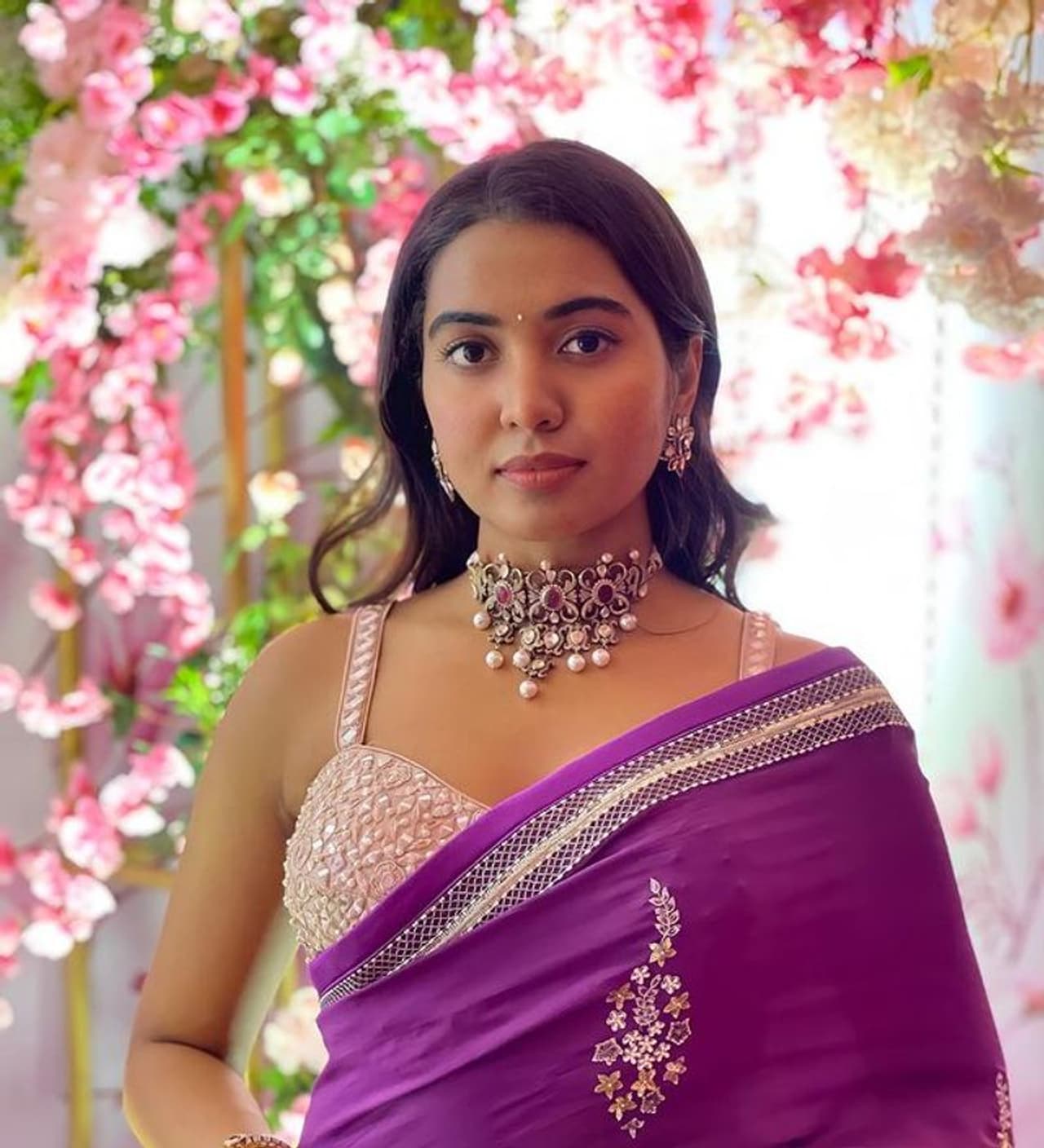 పర్పుల్ కలర్ శారీలో కనువిందు చేసే ఫోటోలను షేర్ చేసింది. స్లీవ్లెస్ బ్లౌజ్ ధరించి నగల దగదగలతో శివాత్మిక అందాలు మెరుస్తుండటం విశేషం. అంతేకాదు ఆమె అందాలను హైలైట్ చేస్తున్నాయి. క్యూట్, హాట్ మేళవింపుగా ఆమె ఇచ్చిన పోజులు నెటిజన్లని చూపుతిప్పుకోనివ్వడం లేదు. ప్రస్తుతం ఈ నయా పిక్స్ నెట్టింట చక్కర్లు కొడుతూ అభిమానులను ఖుషీ చేస్తున్నాయి.