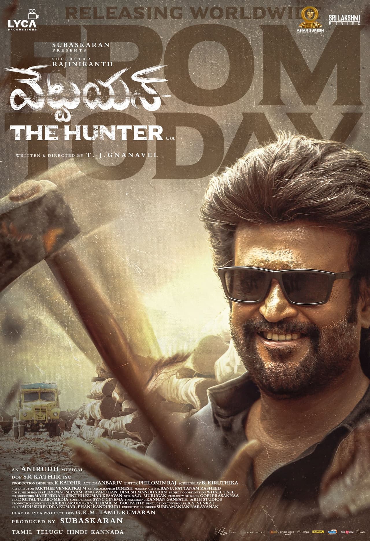 సూపర్ స్టార్ రజనీకాంత్ నటించిన తాజా చిత్రం వేట్టయన్. టిజి జ్ఞానవేల్ దర్శకత్వంలో, లైకా సంస్థ నిర్మాణంలో ఈ చిత్రం తెరకెక్కింది. అయితే ఈ పూర్ ప్రమోషన్స్ కారణంగా ఈ మూవీపై రజనీకాంత్ చిత్రానికి ఉండాల్సిన స్థాయిలో బజ్ లేదు. మంజు వారియర్ ఈ చిత్రంలో రజనికి జోడిగా నటించారు. ఆమె నటించిన 'అదరగొట్ట వచ్చిండే మనసిలాయో' అనే సాంగ్ మాత్రం బాగా వైరల్ అయింది. ఈ చిత్రానికి అనిరుద్ సంగీతం అందించారు.