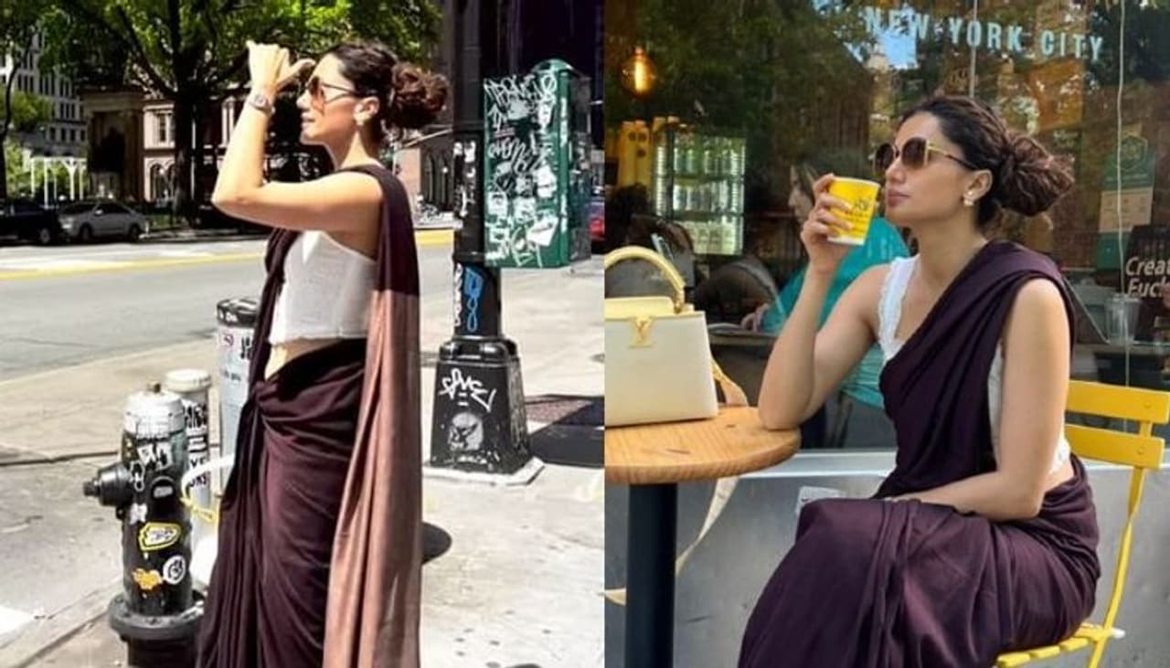 చీరకట్టులో స్టయిల్ గా ఎలా ఉండాలో తాప్సి నేర్పుతోంది. కాఫీ షాప్ లో, రోడ్లపై తిరుగుతూ తాప్సి ఇస్తున్న ఫోజులు ఆకట్టుకుంటున్నాయి. ఈ ఫోటోలకు తాప్సి యాంటీ బార్ పర్సన్ అని కామెంట్ పెట్టింది. అంటే ఆమెకు బార్ లోకి వెళ్లి మధ్యం సేవంచడం నచ్చదు.. ఇలా కాఫీ ఎంజాయ్ చేయడం ఇష్టం అని అర్థం వచ్చేలా కామెంట్ చేసింది.