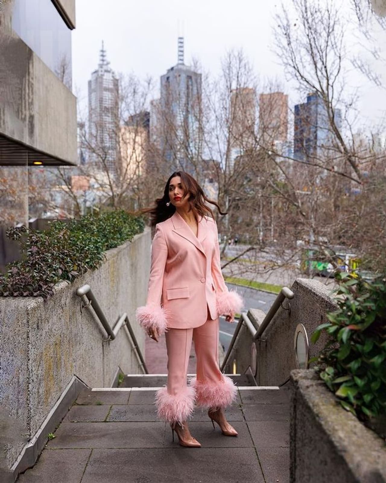 తమన్నా(Tamanna) తాజాగా పింక్ అందాలతో మెస్మరైజ్ చేస్తుంది. అందాలు కనిపించకుండా డ్రెస్ వేసుకుని సరికొత్త లుక్లో కనువిందు చేస్తుంది. పింక్ డ్రెస్లో హోయల పోయింది తమన్నా. మెల్బోర్న్ లో దిగిన పిక్స్ ని తాజాగా ఆమె షేర్ చేసింది. హాట్ పోజులిస్తూ కుర్రాళ్ల మతిపోగొడుతుంది.