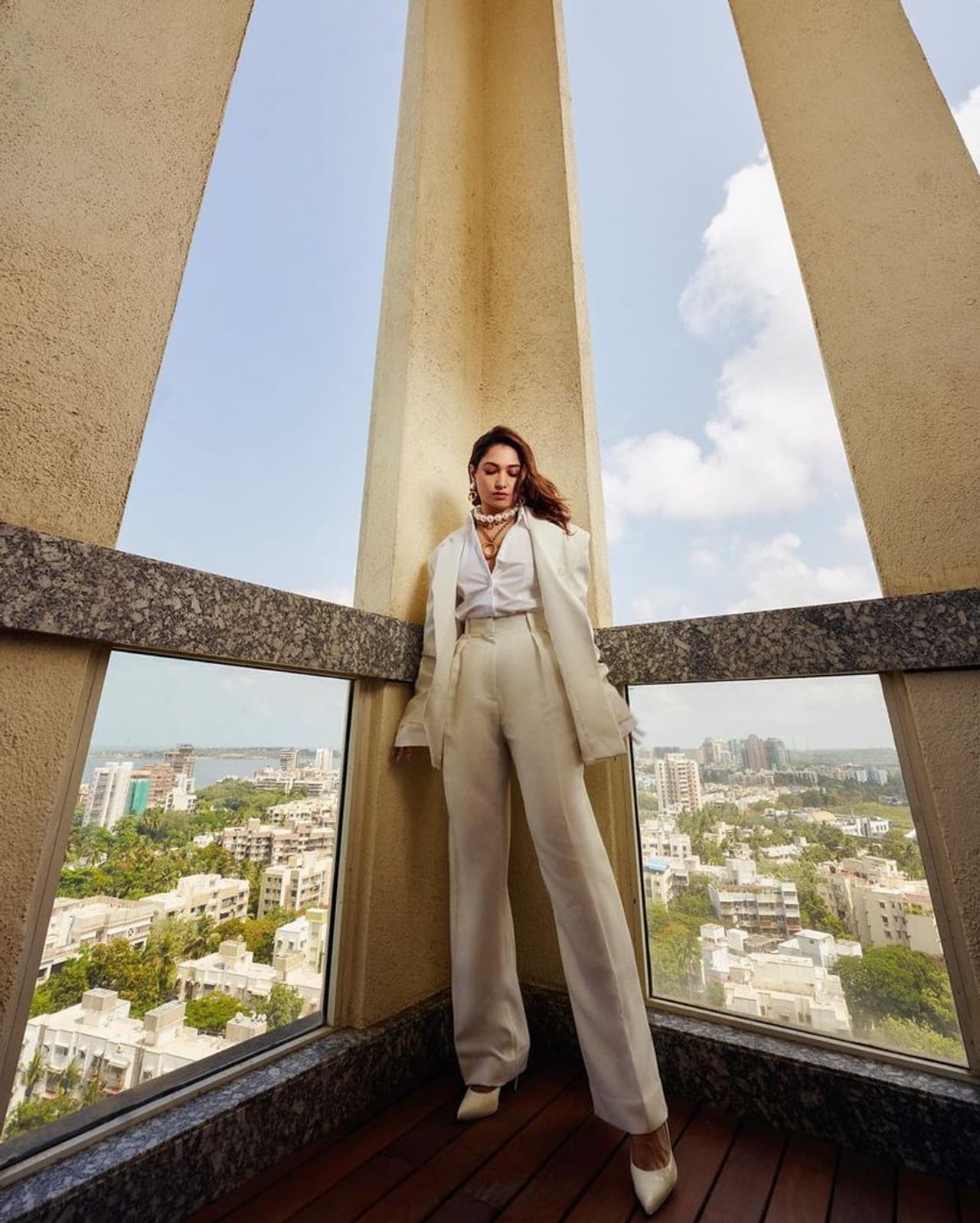 తాజాగా తమన్నా మరోసారి తన అందంతో కళ్ళు చెదిరే ఫోజులు ఇచ్చింది. కంప్లీట్ వైట్ డ్రెస్ లో తమన్నా తన మిల్కీ అందాలకు మరింత మెరుపులు జోడించింది. వైట్ షర్ట్ ధరించిన తమన్నా దానిపై వైట్ బ్లేజర్ లో స్టైలిష్ గా మెరిసింది.