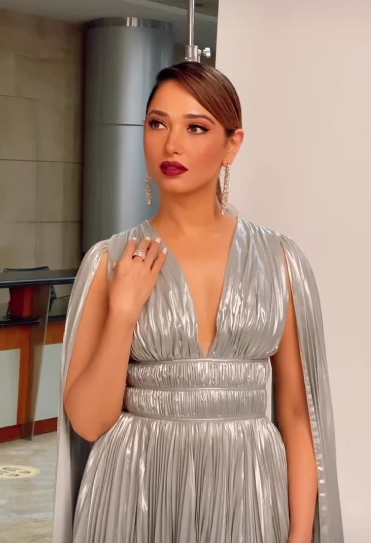 తమన్నా(Tamannah) గ్లామర్ క్వీన్గా టాలీవుడ్లో మంచి గుర్తింపు తెచ్చుకుంది. భారీ ఫాలోయింగ్ని సొంతం చేసుకుంది. ఈ అమ్మడి హాట్ షో ఎప్పుడూ ఆడియెన్స్ కొత్తగానే ఫీలవుతుంటాయి. ఆమె అందాల కోసం ఆతృతగా వేచి చూస్తుంటారు. కచ్చితంగా అభిమానులను ఖుషీ చేసేందుకు తానెప్పుడూ సిద్ధంగానే ఉంటుంది Tamannah. తాజాగా సిల్వర్ గౌన్లో మెరిసిపోయింది. అందాల నెలవంక భూమిపైకి వచ్చిందా అనేంతగా ముస్తాబైంది. క్లీవేజ్ అందాలతో హోయలు పోయింది. నెట్టింట అందాల పోత పోసింది. లేటెస్ట్ గా ఓ ఈవెంట్లో ఈ భామ సందడి చేసింది. ఈ సందర్భంగా దిగిన తమన్నా ఫోటోలు ఇప్పుడు సామాజిక మాధ్యమాల్లో హల్చల్ చేస్తున్నాయి.