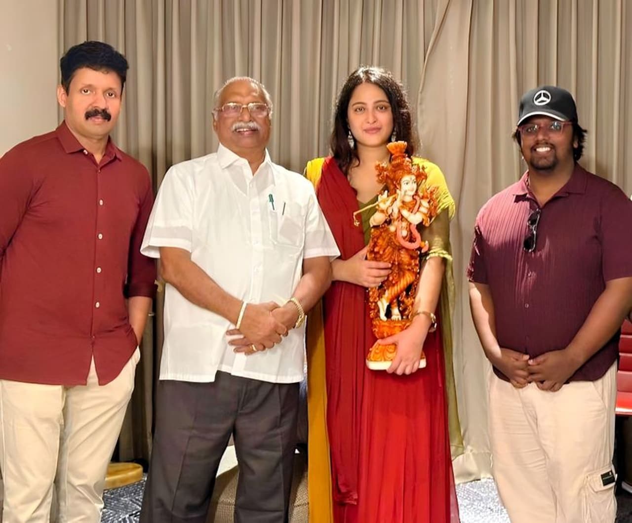 తాజాగా అనుష్క శెట్టి శ్రీకృష్ణుడి విగ్రహాన్ని పట్టుకొని ఫోటోకు ఫోజిచ్చిన ఫొటో ఒకటి సోషల్ మీడియాలో వైరల్ అవుతోంది. మలయాళంలో తను నటించిన కొత్త చిత్రం యూనిట్ తో ఇలా ఫొటోకు స్టిల్ ఇచ్చింది.