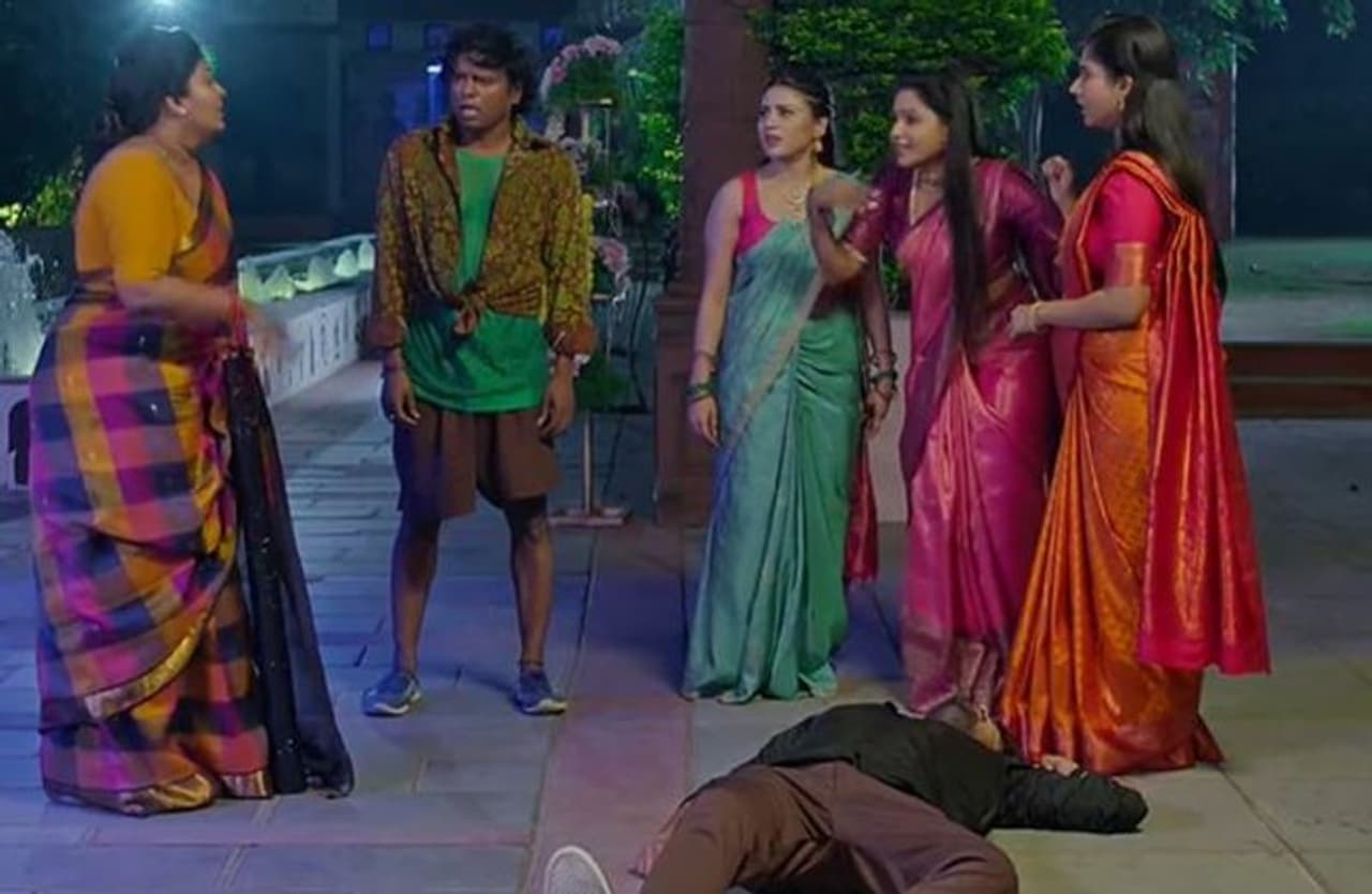 అరుణ్ ని చాలా కష్టపడి కట్టేయడానికి మోసుకొచ్చిన ఆడోళ్లు.. వాడిని మోసి నడుము నొప్పి వచ్చిందని అనుకుంటూ ఉంటారు. తాగుబోతు వ్యక్తి.. అరుణ్ ని కట్టేయడానికి తాడు తీసుకువస్తాను అని చెప్పి ఓ చీర పట్టుకొని వస్తాడు. ఆలోగా స్వప్న.. ఈ అరుణ్ వల్ల తన పై మచ్చపడిందని.. చంపేస్తా అంటూ గొంతు పిసుకుతుంది, కావ్య, పద్దూ ఆపేస్తారు. ఈలోగా ఆ తాగుబోతోడు చీర తెచ్చి... అరుణ్ ని కట్టేయడానికి హెల్ప్ చేస్తాడు. తర్వాత వాడికి డబ్బులు ఇవ్వడంతో తాగడానికి వెళ్లిపోతాడు. వీళ్లు కూడా అక్కడి నుంచి వెళ్లిపోవాలి అనుకుంటుండగా, అరుణ్ ఫోన్ మోగుతుంది. ఫోన్ తీసి చూసేలోగా ఆ ఫోన్ కాస్త స్విచ్ఛాఫ్ అవుతుంది. రాహుల్ ఫోన్ చేసినట్లు వీళ్లు తెలుసుకోలేరు. మరోవైపు రాహుల్.. ఫోన్ ట్రై చేస్తూనే ఉంటాడు. కానీ స్విచ్ఛాప్ రావడంతో తిట్టుకుంటూ ఉంటాడు.