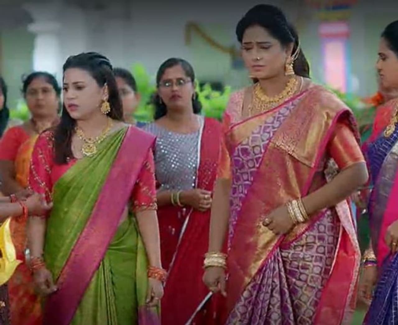 మురళి గాజులు వేయడం తప్పించుకోవడానికి గాజు వేయకుండా చేతిలోనే పగలకొట్టుకుంటాడు. అది చూసి అరవింద గాయం అయ్యిందని మురళిని పక్కకు తీసుకువెళ్తుంది. తర్వాత, సంగీత్ ఏర్పాటు చేయాలని అందరూ మాట్లాడుకుంటూ ఉంటారు.
