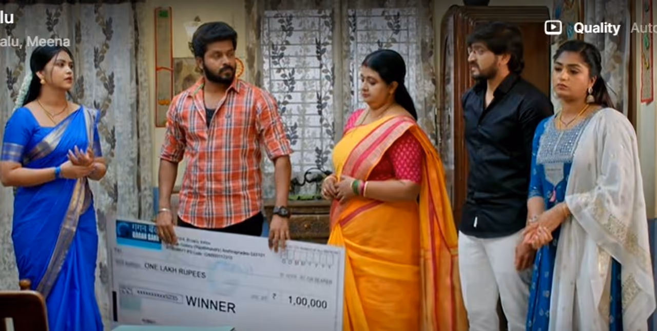 బాలు, మీనా ఇద్దరూ కలిసి తాము గెలిచిన చెక్ ని చూసుకొని మురిసిపోతూ ఉంటారు. అక్కడికి ప్రభావతి, రోహిణీ, మనోజ్ లు వస్తారు. మనోజ్ రావడం రావడమే.. ‘ గెలిచింది లక్ష రూపాయలే కోటి రూపాయలు అన్నట్లు మురిసిపోతున్నావ్’ అని అంటాడు. దానికి బాలు..‘ లక్షలు లక్షలు ఖర్చు పెట్టి నిన్ను డిగ్రీల మీద డిగ్రీలు చదివిస్తే.. నువ్వు సాధించింది ఏంట్రా? మళ్లీ నేను సాధిస్తే ఏడుస్తావేంటి?’ అని ప్రశ్నిస్తాడు. దానికి ప్రభావతి వెంటనే ‘ అవునవును..నీ లక్ష చూసి నిన్ను తొక్కేస్తున్నాం’ అని వెటకారంగా మాట్లాడుతుంది.దానికి బాలు‘ దీన్ని ఏమంటారు దుఖావతి..కడుపుమంట, అసూయ, ఈర్ష్య, చూడలేకపోతున్నారా’ అని ఏవేవో డైలాగులు కొడతాడు. అప్పుడే సత్యం ఇంట్లోకి వస్తాడు. అది చూసి మీనా.. ఆపేయమని మామయ్య గారు వచ్చారు అని చెబుతుంది. కానీ.. మనోజ్,బాలు మాత్రం ఆపరు. సెటైర్లు వేసుకుంటూనే ఉంటారు.‘ చూశావా నాన్న.. వీళ్లు ముగ్గురూ కలిసి నా మీద పడి ఏడుస్తున్నారు’ అని బాలు వాళ్ల నాన్నకు ఫిర్యాదు చేస్తాడు. దానికి సత్యం... ‘ వింటున్నాను రా.. వాళ్లు ఏడిపించిన దానికంటే.. నువ్వు ఏడిపించేదే ఎక్కువ ఉంది’ అని అంటాడు. దానికి బాలు..‘ ఓ అలా ఉందా.. కానీ ఒక్క రోజులో రూ.లక్ష సంపాదించడం గొప్పే కదా నాన్న’ అంటాడు. వెంటనే ప్రభావతి..‘ కష్టపడి సంపాదిస్తేనే గొప్ప’ అని అంటే.. ‘నీ దృష్టిలో కష్టపడి మింగినా కూడా గొప్పే కదా దుఖావతి’ అని బాలు సెటైర్ వేస్తాడు.‘ ఈ డబ్బు మా మధ్య ఉన్న అనుబంధాన్ని చూసి ఇచ్చారు మామయ్య’ అని మీనా అంటే..‘ అది ఈ తల్లీ కొడుకులకు ఏం తెలుస్తుందమ్మా... భర్తను మోసం చేసే భార్య మీ అత్త.. భార్యను మోసం చేసే భర్త ఈ మనోజ్ గాడు’ అని సత్యం అంటాడు. ఆ మాటకు బాలు సంతోషించి.. మనోజ్ ని ఇంకో నాలుగు మాటలు అనేస్తాడు.సత్యం.. బాలు,మీనాలను తెగ పొగిడేస్తాడు. అది చూసి.. మనోజ్ బాగా కోపం వస్తుంది.