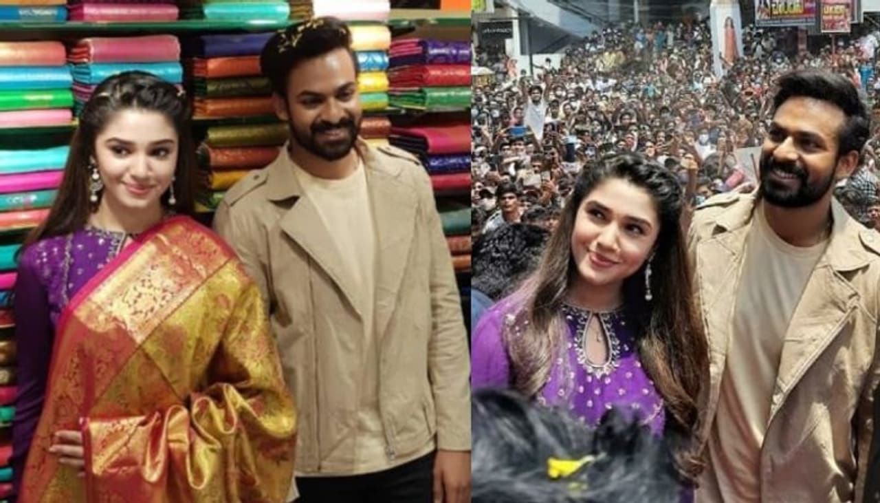 షామింగ్ మాల్ ఓపెనింగ్లో కృతి శెట్టి, వైష్ణవ్ తేజ్ సందడి.