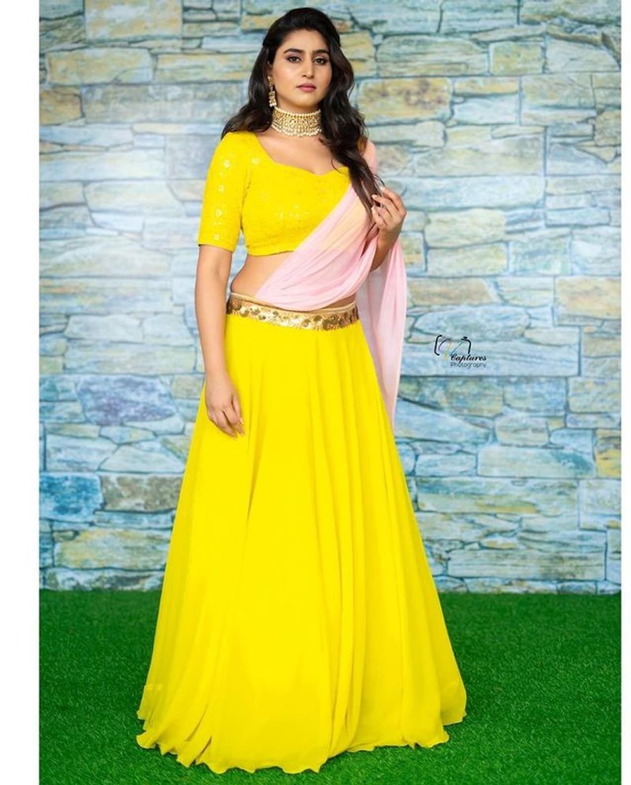 ఈ క్రమంలో తాజాగా లెహంగా వోణీలో ఫొటోషూట్ చేసింది. ఎల్లో దుస్తుల్లో వర్షిణి మరింతగా మెరిసిపోతోంది. గతంతో పోల్చితే కాస్తా బొద్దుగా మారిన ఈ ముద్దుగుమ్మ ట్రెడిషనల్ లుక్ లో ఆకర్షణీయంగా తయారైంది. తాజాగా తను పంచుకున్న ఫొటోల్లో సంప్రదాయ దుస్తుల్లో దర్శనమిచ్చి ఆకట్టుకుంటోంది.