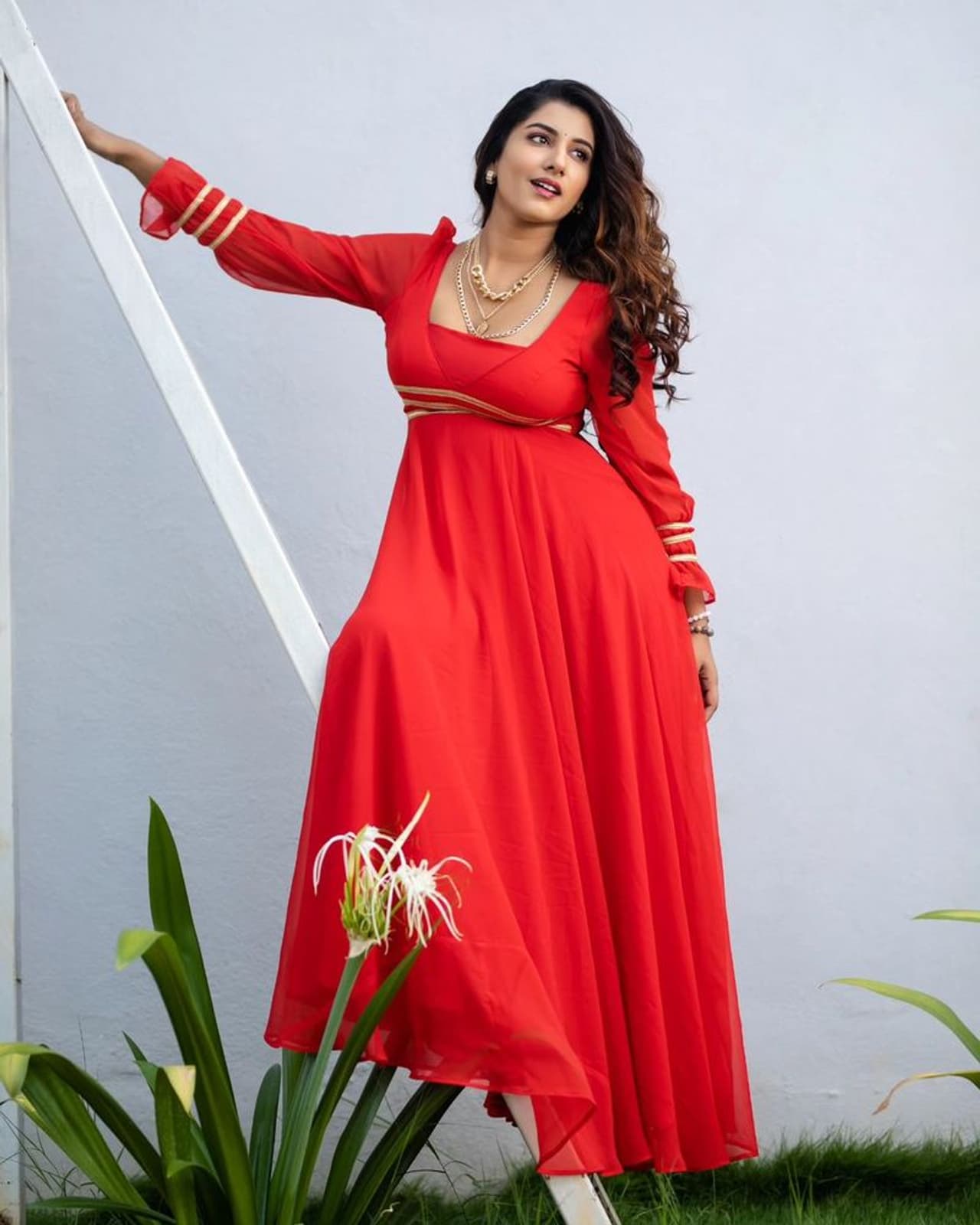 తాజాగా విష్ణుప్రియ మరోసారి తన అందంతో మురిపించింది. రెడ్ లాంగ్ డ్రెస్ లో విష్ణు ప్రియా ఇస్తున్న ఫోజులు స్టన్నింగ్ అని చెప్పాలి. కుర్రాళ్ళయితే క్షణం కూడా చూపు తిప్పుకోలేరు.