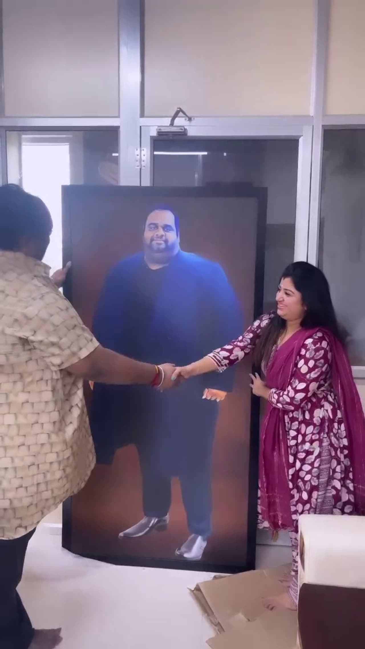 ఇక మహాలక్ష్మి తన భర్త పుట్టినరోజుకి గుర్తుండిపోయేలా మెమొరబుల్ గిఫ్ట్ ఇచ్చింది. మహాలక్ష్మి ఇచ్చిన 6 అడుగుల గిఫ్ట్ కి రవీందర్ థ్రిల్ అయ్యారు. 6 అడుగుల ఫోటో ఫ్రేమ్ ని మహాలక్ష్మి స్వయంగా చేయించి రవీందర్ కి ప్రజెంట్ చేసింది. ఈ ఫోటో ఫ్రేమ్ లో రవీందర్ సూట్ లో స్టైలిష్ గా ఉన్నారు. ఈ గిఫ్ట్ ఇచ్చిన తన భార్యకి కృతజ్ఞతలు తెలిపాడు.