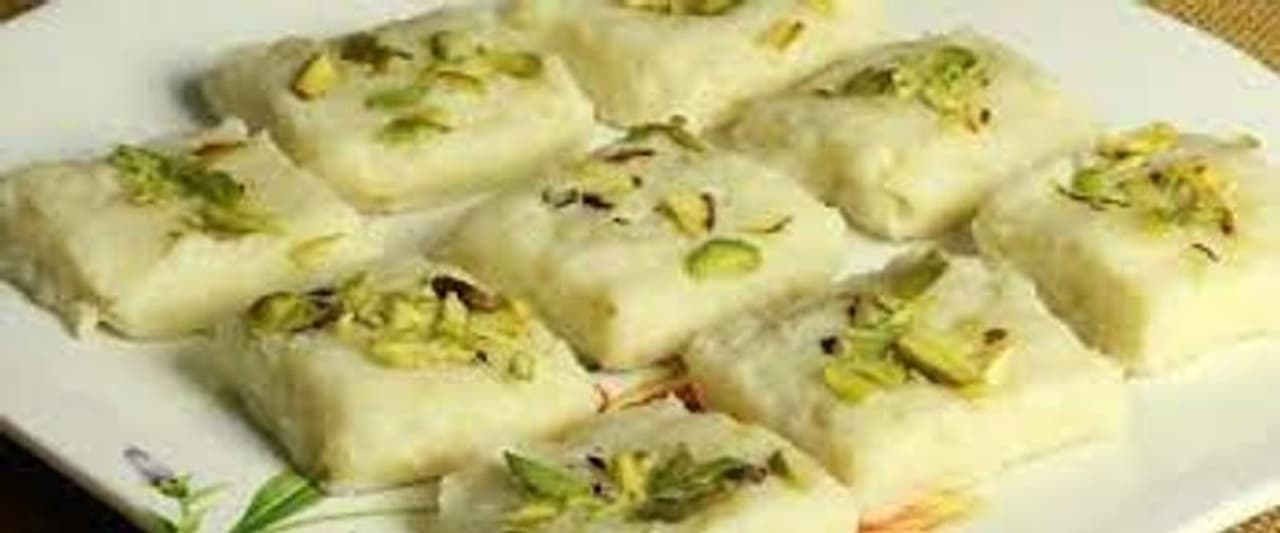 కావలసిన పదార్థాలు: ఒక కప్పు జీడిపప్పు (Cashew), ఒక కప్పు పాలు (Milk), ఒకటింపావు కప్పు పనీర్ (Paneer), పావు కప్పు నెయ్యి (Ghee), పావు కప్పు పంచదార (Sugar), కొంచెం యాలకుల పొడి (Cardamom powder), కొన్ని పిస్తా (Pista) పలుకులు.