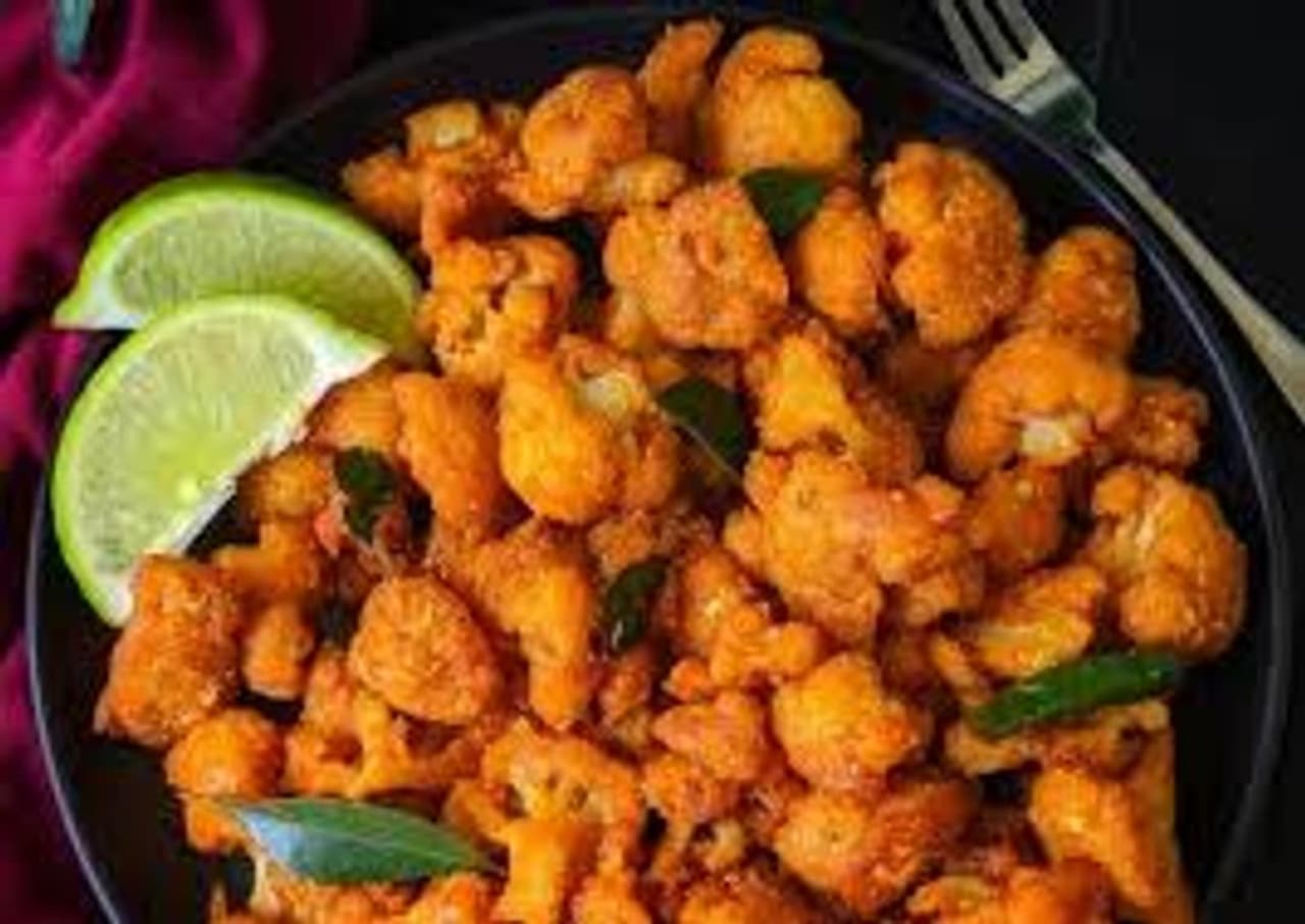 కావలసిన పదార్థాలు: 500gms క్యాలీఫ్లవర్ (Cauliflower), మూడు టేబుల్ స్పూన్ ల మైదా (Maida), మూడు టేబుల్ స్పూన్ ల కార్న్ ఫ్లోర్ (Corn flour), ఒక టేబుల్ స్పూన్ బియ్యపిండి (Rice flour), ఒక టీస్పూన్ కారం (Red chilly powder), ఒక టీ స్పూన్ అల్లం వెల్లుల్లి పేస్ట్ (Ginger garlic paste), రుచికి సరిపడు ఉప్పు(Salt), ఒక టీస్పూన్ గరంమసాలా (Garam masala), కొత్తిమీర తరుగు (Chopped Coriyander), ఫుడ్ కలర్ (Food colour), నాలుగు పచ్చిమిరపకాయలు (Green chillies), కరివేపాకు (Curries), ఢీ ఫ్రైకి సరిపడా ఆయిల్ (Oil).
