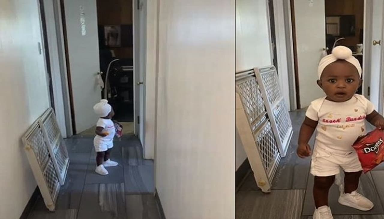 ఏ దొంగా.. ఏం చేస్తున్నావ్.. అనంగానే ఓ అందమైన నవ్వుతో తండ్రిని మాయచేసి చేతిలోని స్నాక్స్ కింద పడేస్తుంది..డోరిటో చిప్స్ నుండి బియ్యం క్రిస్పీల వరకు ప్రతీది ఈ చిన్నారి చేతివాటానికి చిక్కిందే. అంతేకాదు ఆమె తండ్రి దాచిపెట్టుకున్న చిరుతిండిని కూడా వదల్లేదు.