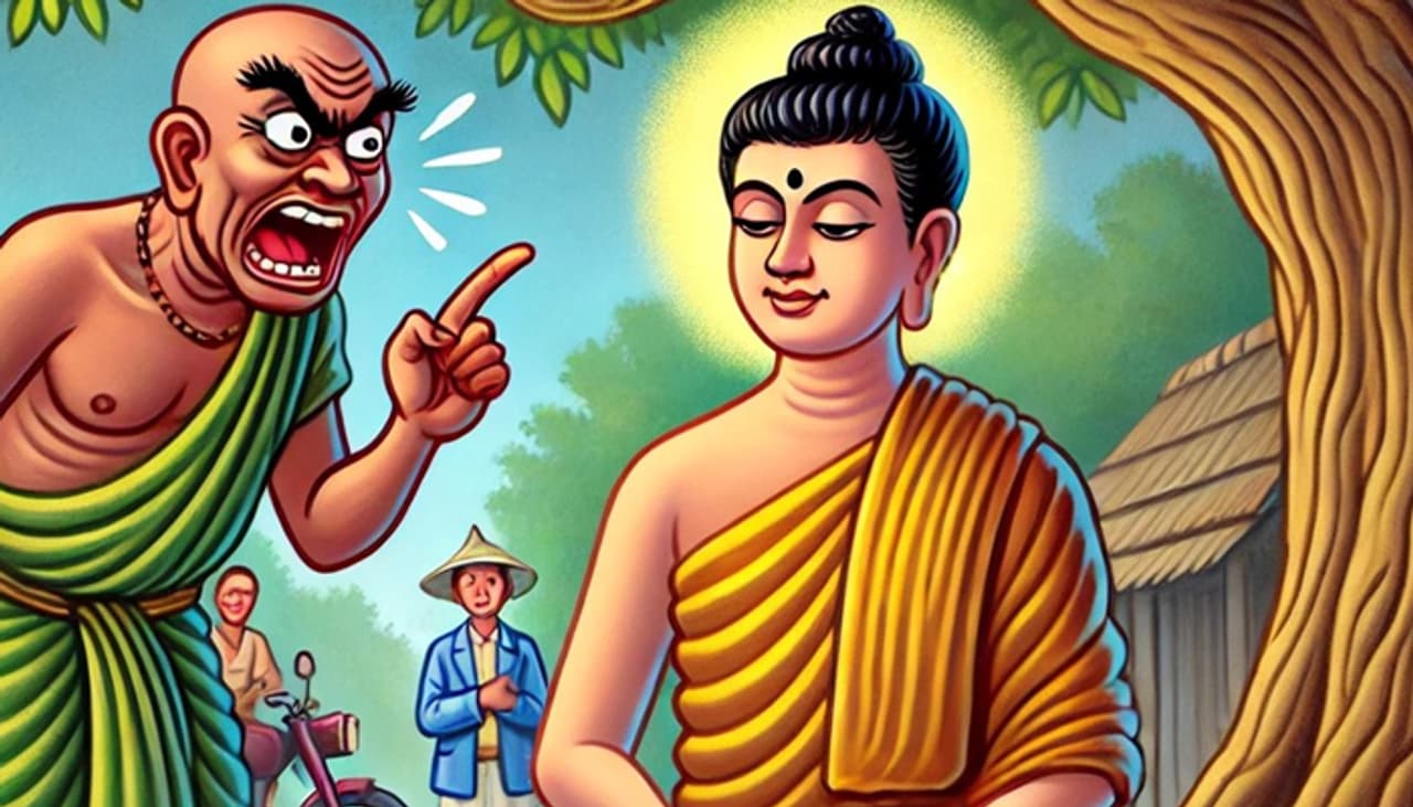 ఒకరోజు బుద్ధుడు తన శిష్యులతో కలిసి ఒక గ్రామానికి వెళ్తాడు. ఆ గ్రామంలో ఉండే ఓ వ్యక్తి ఎలాంటి కారణం లేకుండానే బుద్ధుడిని దూషిస్తాడు. అవమానిస్తాడు, నొటికొచ్చినట్లు తిడతాడు. అయితే బుద్ధుడు మాత్రం ప్రశాంతంగా నవ్వుతాడు తప్ప. ఆ వ్యక్తిపై అస్సలు కోపం తెచ్చుకోడు.
