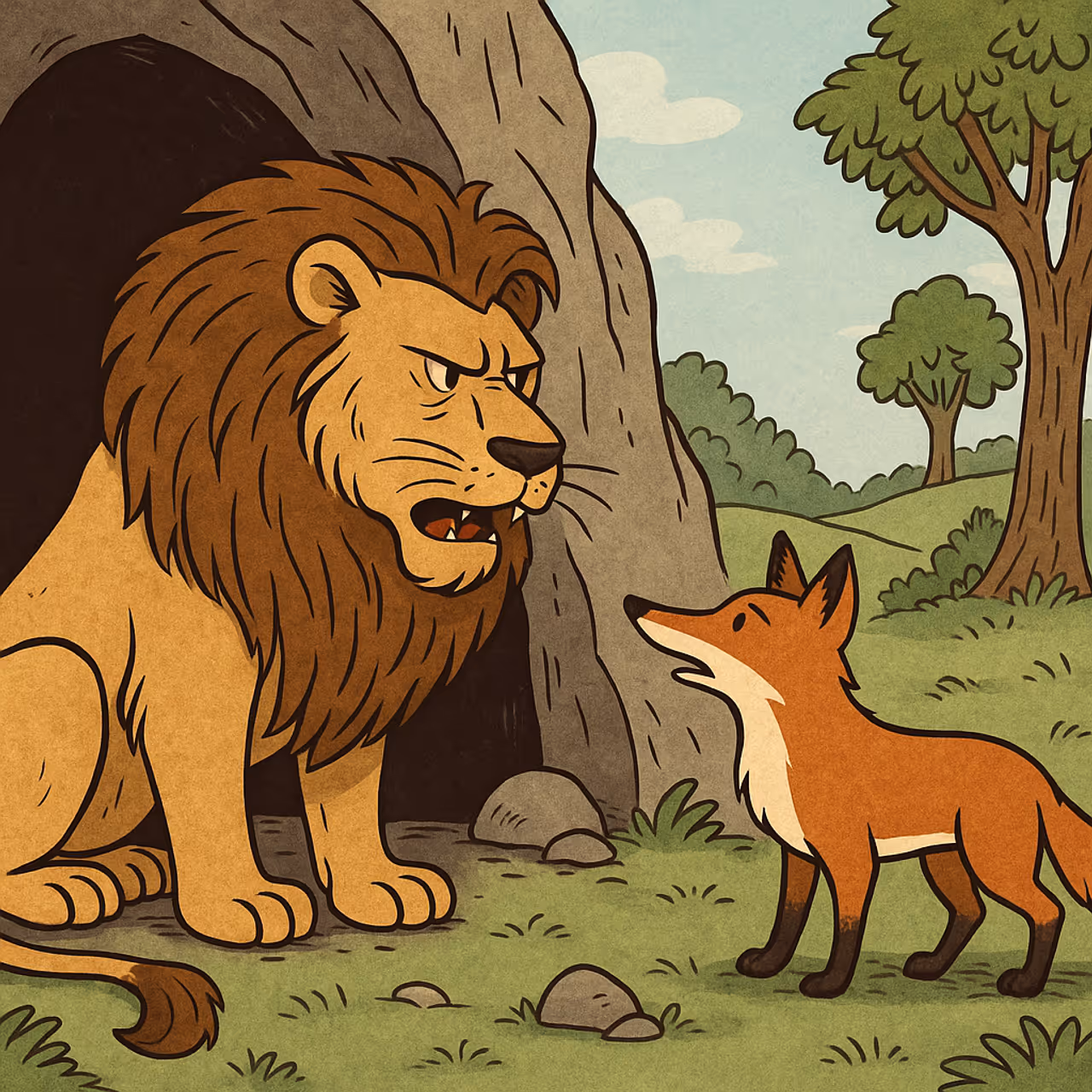 అయితే.. లోపలికి వెళ్లకుండా, బయట నుంచే సింహాన్ని పిలిచింది. అన్ని జంతువులను నమ్మించినట్లే... నక్కకు కూడా మాయ మాటలు చెప్పి, లోపలికి రమ్మని పిలిచింది. కానీ.. నక్క లోపలికి వెళ్లలేదు. “ఓ సింహ రాజా! నీ ఆరోగ్యం బాగోలేదని విన్నాను. కానీ ఇక్కడి అడుగుల ముద్రలు చూసి ఒక విషయం అర్థమైంది — అందరూ లోపలికి వెళ్లారు, కానీ ఎవరూ తిరిగి రాలేదు. కాబట్టి నేను లోపలికి రావడం లేదు!” అని చెప్పి వెంటనే అక్కడినుంచి పరుగెత్తింది. అలా తెలివిగా నక్క తన ప్రాణాలను కాపాడుకుంది.