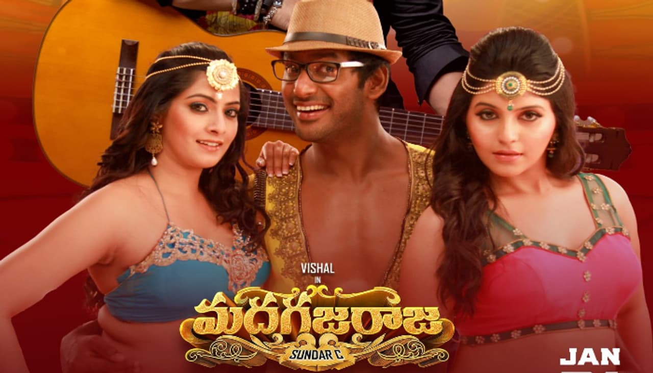 రాజా అలియాస్ మద గజ రాజ అలియాస్ ఎంజీఆర్ (విశాల్) ఓ చిన్న ఊర్లో కేబులు టీవీ నడిపిస్తుంటాడు. తండ్రి రిటైర్ మెంట్కి దగ్గరగా ఉన్న ఇన్స్పెక్టర్. ఓ కేసులో జైలు శిక్ష అనుభవించి వస్తున్న నేరస్థుడికి ప్రాణహానీ ఉందని చెప్పి తాను సేఫ్గా తీసుకువస్తాడు రాజ. ఆ నేరస్థుడి కూతురు మాధవి(అంజలి)కి తొలి చూపులోనే పడిపోతాడు. దీంతో వారిని తన ఇంట్లోనే ఉండేలా ఏర్పాటు చేస్తాడు. ఇద్దరూ ప్రేమించుకుంటారు.
