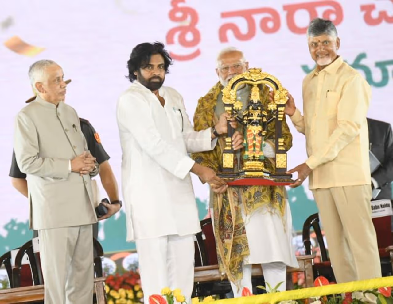 ఆంధ్రప్రదేశ్లో కొత్త ప్రభుత్వం కొలువు తీరింది. చంద్రబాబు సీఎంగా నేడు(బుధవారం) ప్రమాణ స్వీకారం చేశారు. జనసేన అధినేత పవన్ కళ్యాణ్ మంత్రిగా ప్రమాణ స్వీకారం చేశారు. వీరితోపాటు మొత్తం 25 మంత్రులు ప్రమాణ స్వీకారం చేశారు. ప్రధాని మోడీ గెస్ట్ గా ఈ ప్రమాణ స్వీకార కార్యక్రమం జరగడం విశేషం.