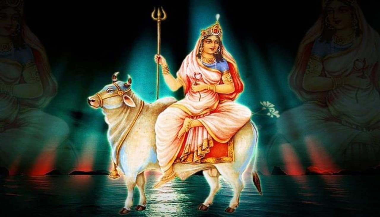 ఈ అమ్మవారి శిరస్సుపై చంద్రవంక, కుడిచేతిలో త్రిశూలం, ఎడమచేతిలో కమలం ఉంటుంది. వృషభం ఈ అమ్మవారికి వాహనం.