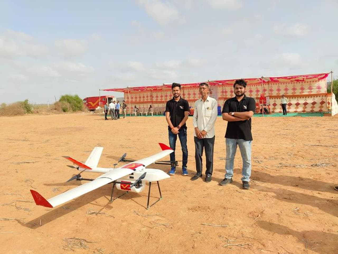 మొదటి సారి పైలట్ ప్రాజెక్ట్ కింద గుజరాత్లోని కచ్ జిల్లాలో డ్రోన్ల సహాయంతో ఇండియన్ పోస్టల్ డిపార్ట్మెంట్ మెయిల్ డెలివరీ చేసింది. ఈ డ్రోన్ 25 నిమిషాల్లో 46 కిలోమీటర్ల దూరాన్ని చేరుకుందని చెబుతున్నారు.