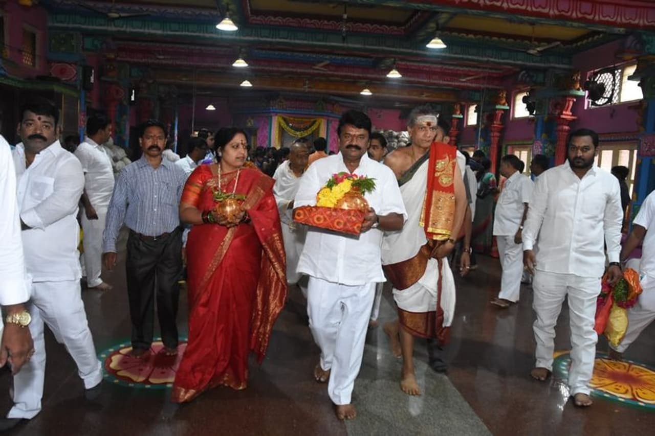 అమ్మవారికి పట్టువస్త్రాలు తీసుకొస్తున్న ఎమ్మెల్యే మాగంటి గోపీనాథ్