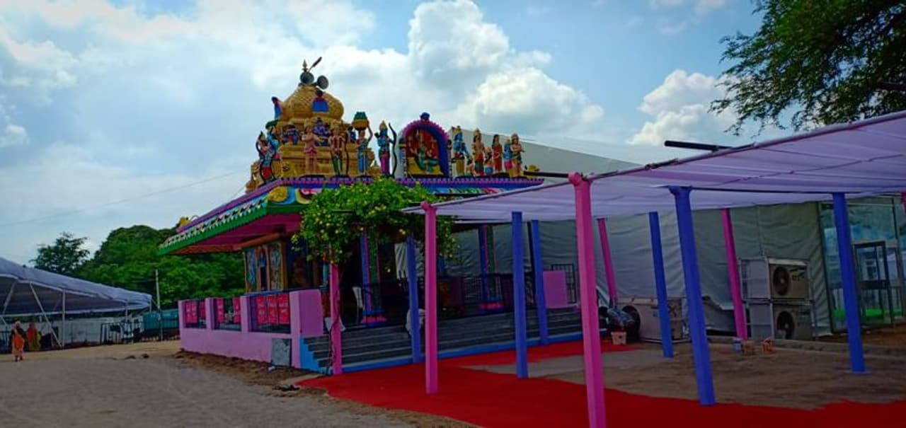 గులాబీ రంగుతో అందంగా ముస్తాబైన దేవాలయం