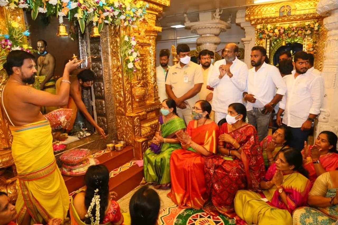 తల్లి శోభతో పాటు మంత్రి సబితా ఇంద్రారెడ్డి, మరికొందరు కుటుంబసభ్యులు, టీఆర్ఎస్ మహిళా నాయకులతో కలిసి ఆలయం వద్దకు చేరుకున్న కవితకు పార్టీ శ్రేణుల నుండి ఘనస్వాగతం లభించింది. ఆలయ సిబ్బంది సాంప్రదాయబద్దంగా వీరిని ఆలయంలోకి తీసుకువెళ్లారు.