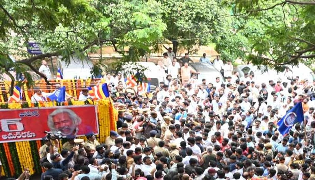 ప్రజా యుద్దనౌక గద్దర్ అంతిమయాత్రలో వేలాది మంది పాల్గొన్నారు. ఎల్ బీ స్టేడియం నుండి అల్వాల్ వరకు ర్యాలీ సాగింది. మధ్యాహ్నం ప్రారంభమైన ర్యాలీ సాయంత్రానికి అల్వాల్ కు చేరుకుంది. అల్వాల్ లో జనాన్ని కంట్రోల్ చేసేందుకు పోలీసులు ఎక్కడికక్కడే బారికేడ్లను ఏర్పాటు చేశారు.