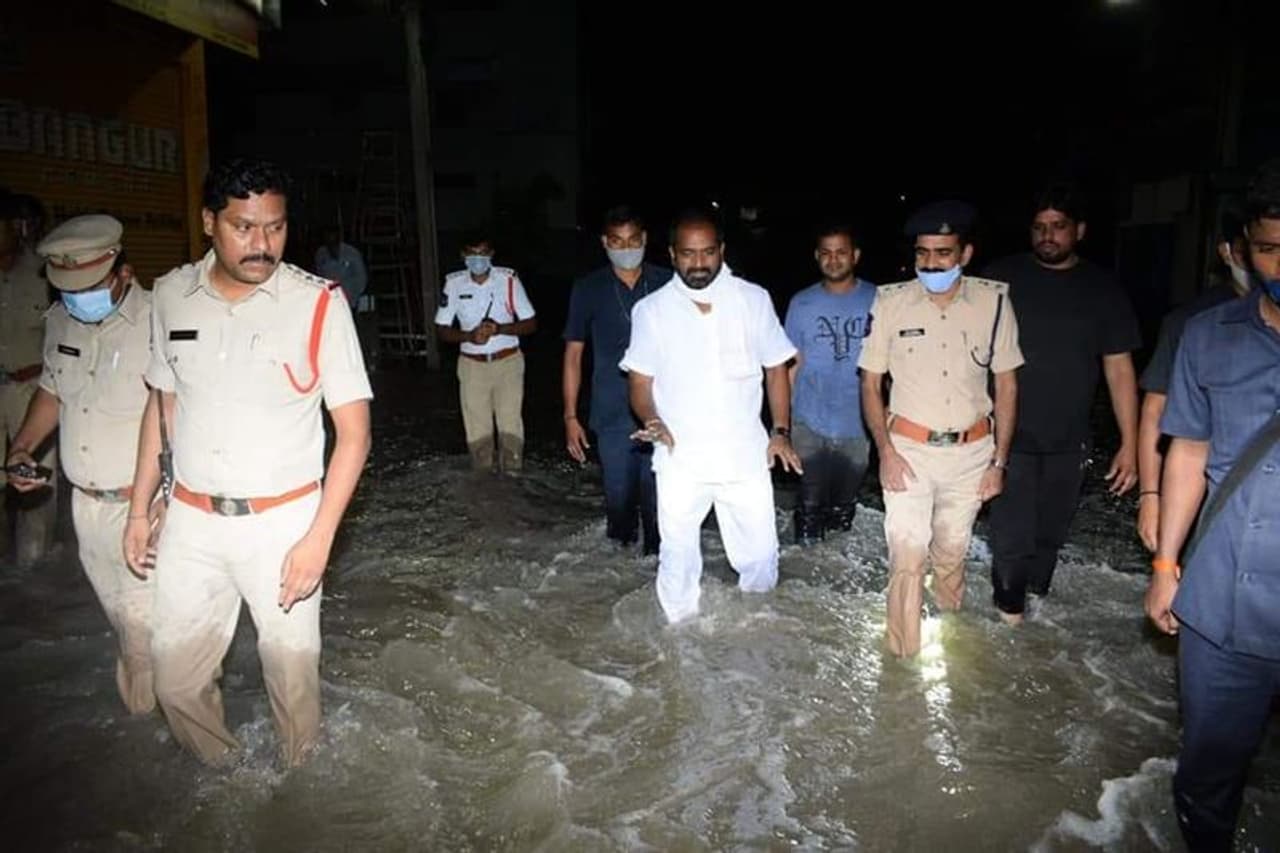 భారీ వర్షంతో పట్టణంలో నెలకొన్న పరిస్థితుల గురించి తెలిసిన వెంటనే మంత్రి శ్రీనివాస్ గౌడ్ లోతట్టు ప్రాంతాల్లో పర్యటించారు. ఉదయం నాలుగు గంటలకే పోలీసులు, మున్సిపల్ అధికారులను వెంటపెట్టుకుని మోకాళ్ల లోతు నీటిలోనే మంత్రి పర్యటన సాగించారు. స్వయంగా పరిస్థితిని సమీక్షించి తగిన చర్యలను అక్కడికక్కడే సూచించారు మంత్రి శ్రీనివాస్ గౌడ్. .